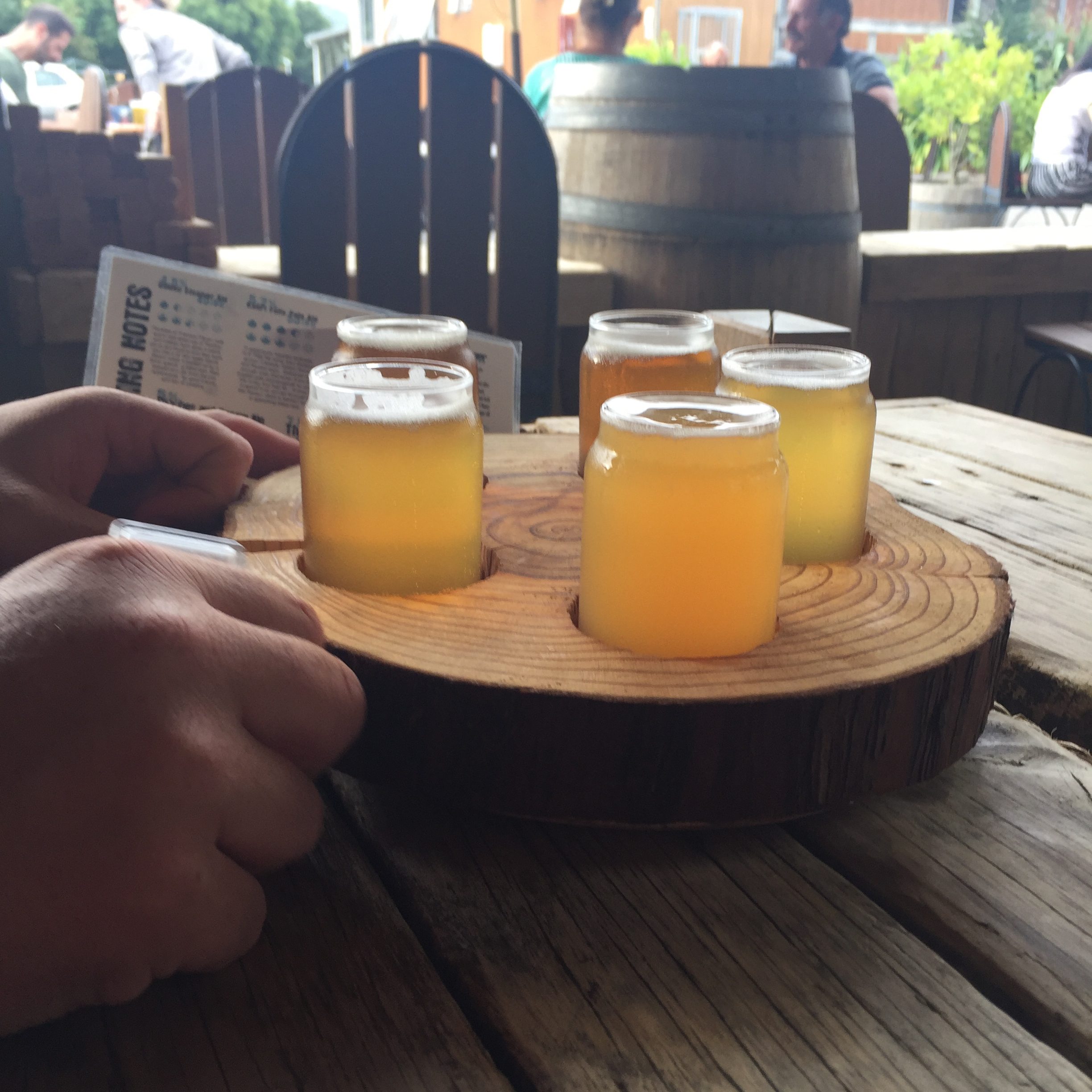 There is a craft brewery called Hot Water Brewing Co. that is located in the park which is really nice. We stopped in and had some dinner here. We ordered corn fritters and buffalo wings. The corn fritters were pretty excellent and the buffalo wings were good too but they were very spicy, as all good buffalo wings should be. Ronnie also ordered a tasting platter of craft beers – 5 different lagers. Some were good, some weren’t. One of them was peaches and cream flavoured beer. Not great.