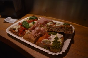 We had three different toppings for our pizza. The first we tried was a pesto and burrata pizza, the second was a mortadella, mozzarella and pistachio pizza and the third was a caprese pizza which had tomato, basil and mozzarella. Every single ingredient was so delicious. The cheese was so creamy and the tomatoes were the perfect balance of sweet and tangy. We hadn’t ever tried mortadella before but it paired with the nuttiness and crunchy texture of the pistachios was perfection. We can easily say it was the best pizza we have ever had and this is day one in Italy!