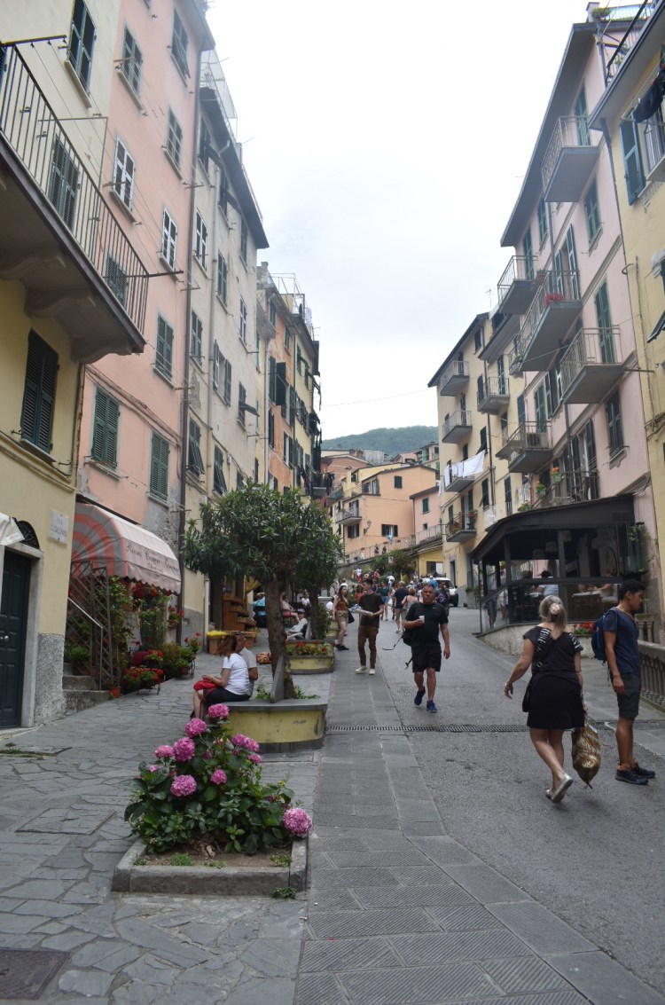 It was another hot day and I (Ronnie) accidentally left my hat in Venice, so I loaded up on the sunscreen. We jumped on the train to the first of the 5 towns – Riomaggiore. It’s a beautiful little town that was built into the side of a mountain so the streets are steep, but really quaint. We bought an Arancini there for a snack which was nice.