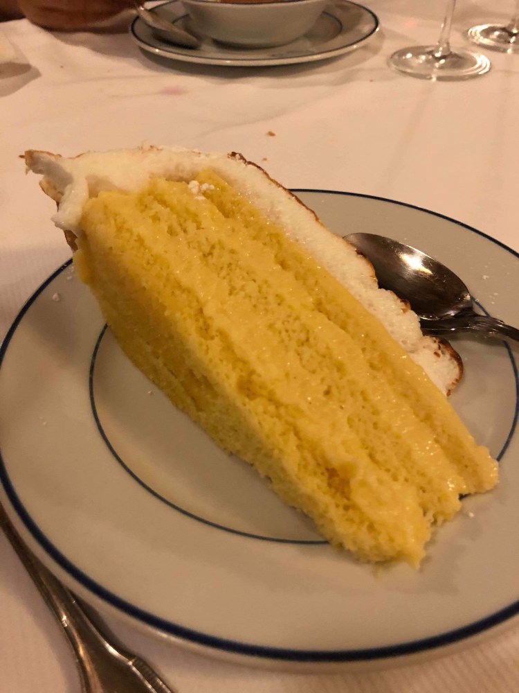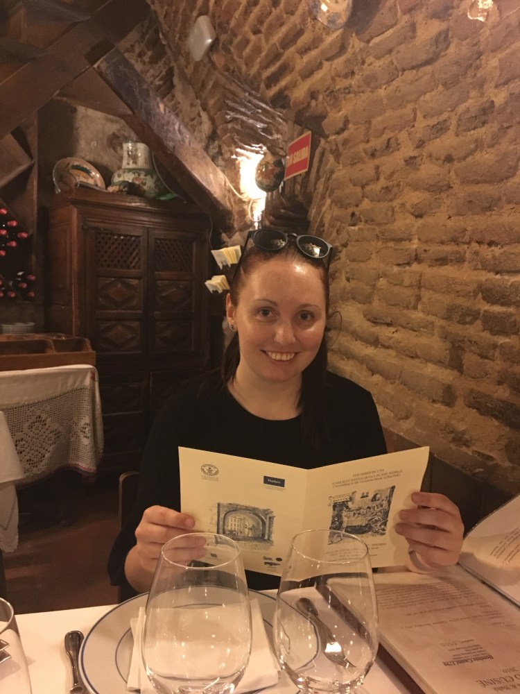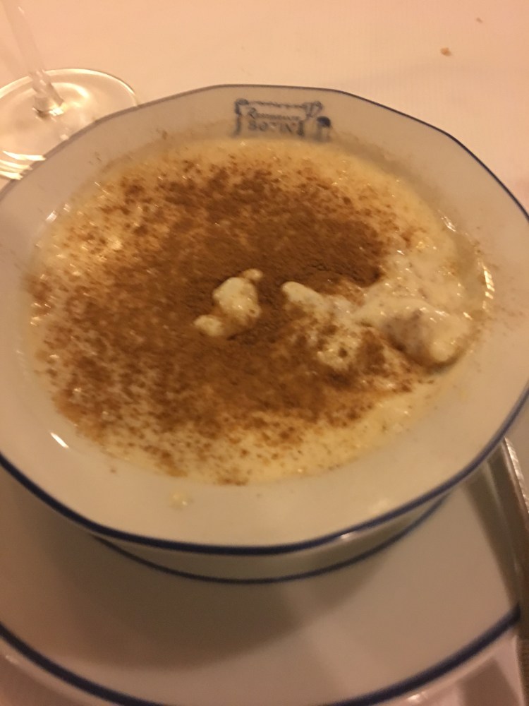 When our plates were cleared we were given the dessert menu. We weren’t planning on getting dessert but we went for it anyway. Ronnie decided on the Arroz Con Leche which is rice pudding. Ronnie loves a rice pudding and he enjoyed this one too. It looked really creamy. I ordered the Tarte Botìn which was a layered cream cake. The cream was more like a custard with cinnamon but it wasn’t as bad as actual custard so I managed to get through most of it. It was also covered in meringue. At the start of this holiday we felt like we were walking so much we wouldn’t gain much of the weight we had lost back but as you are reading more about our food choices you can see we feel very differently about that now!