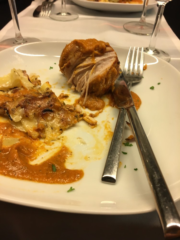Not long after that the main came out. It was a chicken breast with a pumpkin purée and scalloped potatoes. It was so enticing that I forgot to get a picture until I ate a bit of it (sorry!) it was delicious, perfectly cooked and the puree went so well on it.