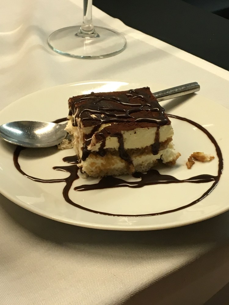 Then for dessert we had a choice of Tiramisu or Yogurt with mango sauce. Having just come from Italy, the home of tiramisu I figured that this would not be as good so I opted for yogurt. It was pretty good, probably the weakest part of the meal but nice. Aimee has the tiramisu which actually looked better, but didn’t compare to Italy.