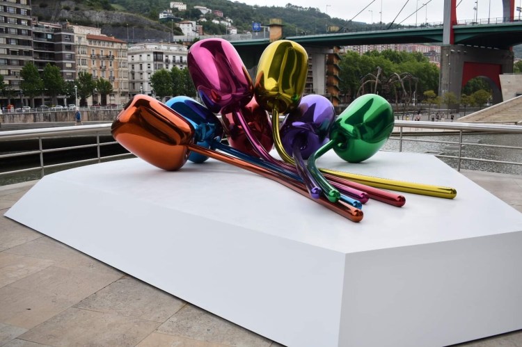 The Guggenheim is a museum of modern art which means it’s going to be pretty weird from the get-go. There were some really weird but also some really good exhibits. Our favourite one was a giant room that you walk through and the walls are shaped as such that they distort your perception of space. Like you start walking with a lean because it feels like the wall is leaning on you. It’s hard to describe but it was really cool. Our other favourite thing was outside the museum they have a giant puppy that is made out of lots of different plants that are currently in flower. It’s pretty awesome.