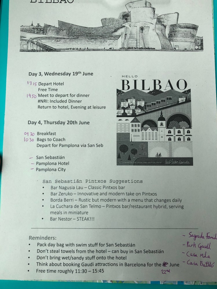Hola! It is currently 9:20am and we are chilling in our beautiful hotel room in Bilbao. Yesterday was an eventful, but also kind of chilled day.