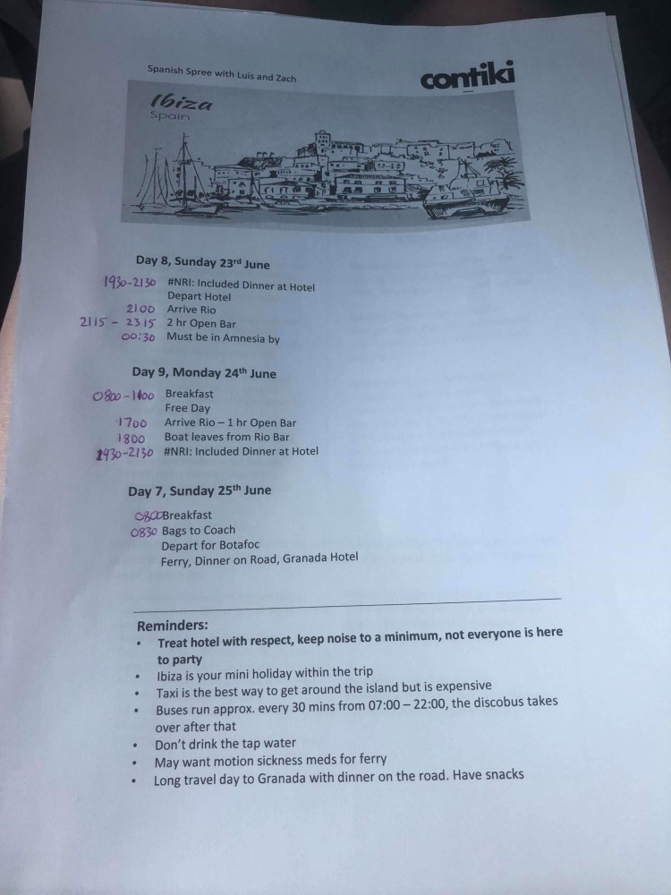 We weren’t so keen for yesterday because we thought it was going to be just a travel day where we would have to eat dinner at a service station and get to our hotel after 10pm. We woke up, had the usual hotel breakfast and left the hotel at 8:30am to Botafoch (lol) port where we were catching a ferry to Denia (mainland Spain). Although we weren’t keen for the big travel day we were not so sad to say goodbye to Ibiza.