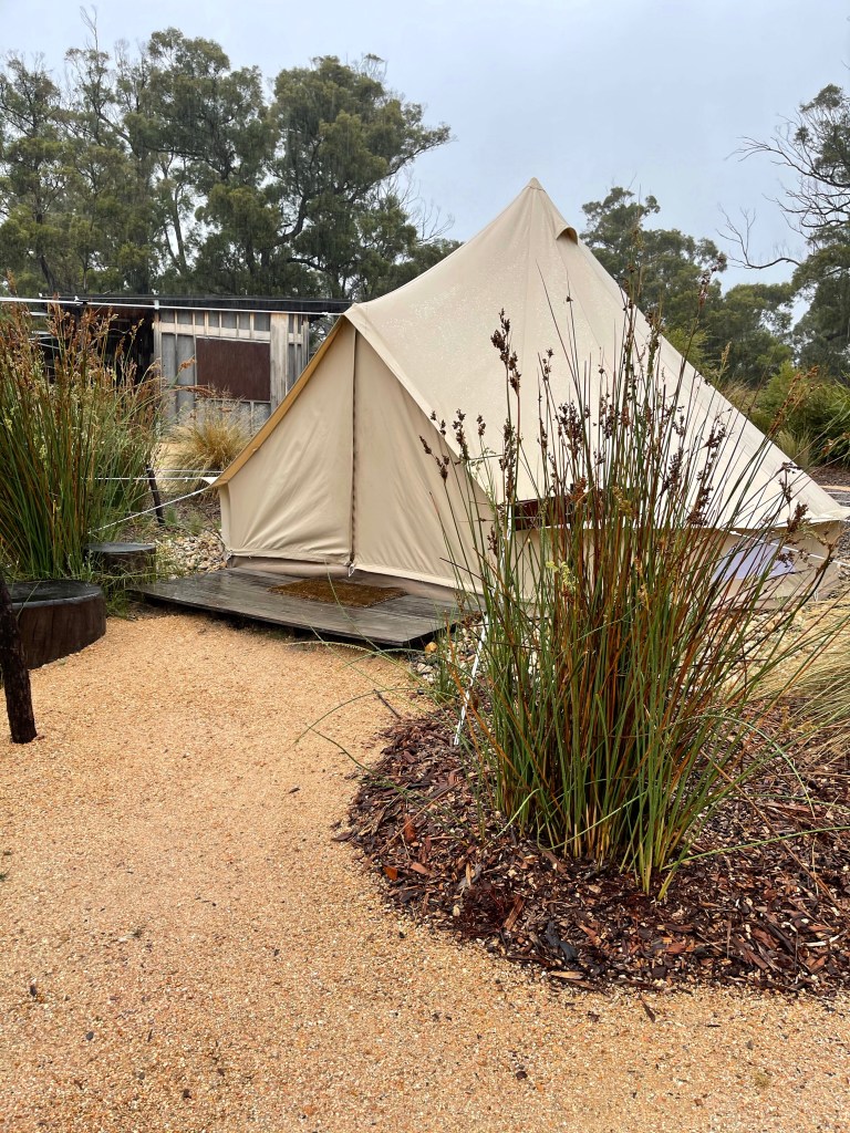 We drove the rest of the way to our accommodation for the night which was the Bay Of Fires Bush retreat – Glamping! Unfortunately again for us, camping/glamping is not real good in the pissing down rain. The tent we were staying in was beautiful and the bed was luxurious.