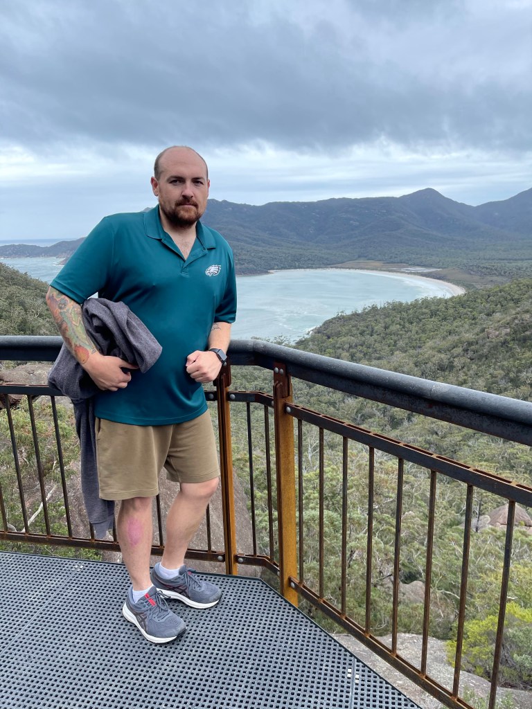 The biggest draw for Freycinet is Wineglass Bay. Many think the name for the bay just comes from the shape but unfortunately that’s just part of it. Whaling used to occur there and the blood from this turned the bay red. The bay is only accessible by hiking or by boat. We planned to just do the 1.5 hour hike to the lookout and see it from a distance. It was a short but tough slog up to the lookout. The track was well formed but the stairs were rough on the ankles. The view was well worth it though.