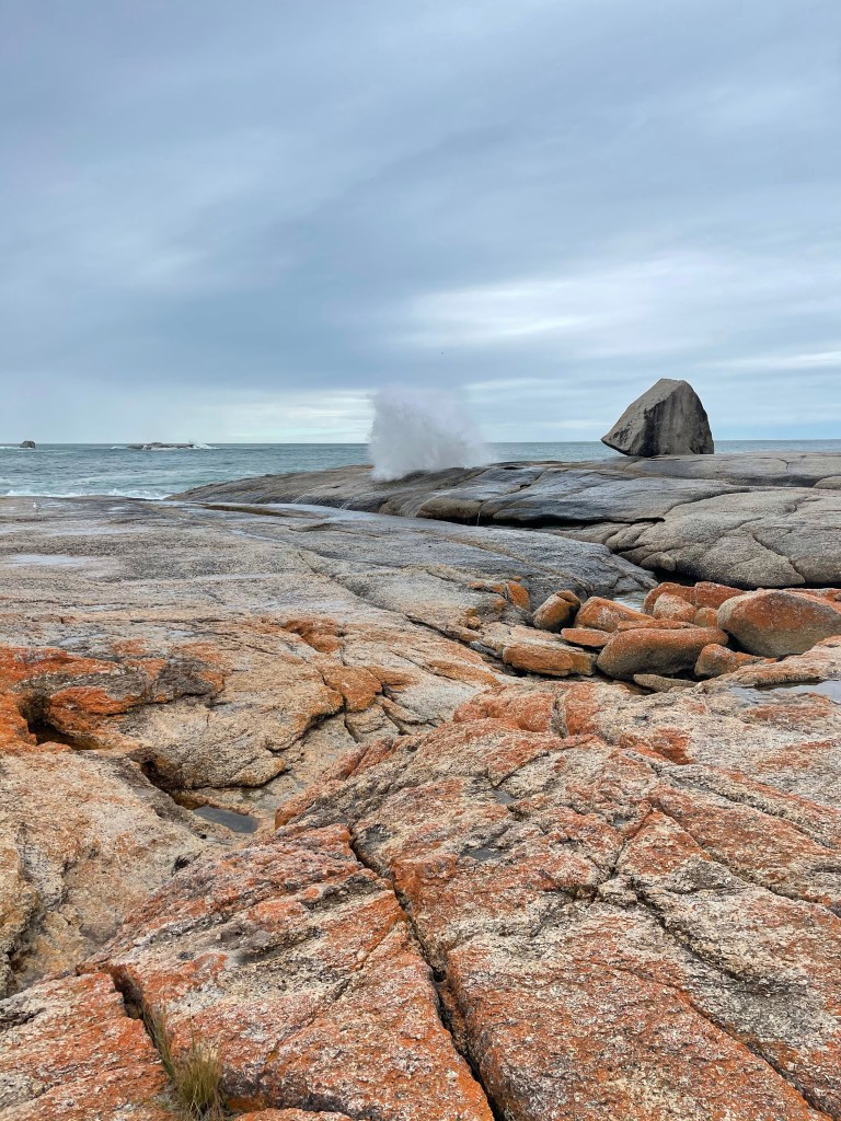 After lunch we went down to the water for the nice views. We visited the Bicheno Blowhole which was pretty cool. The rocks were orange from the lichen which is what we were meant to see at the Bay of Fires but didn’t because of the weather.