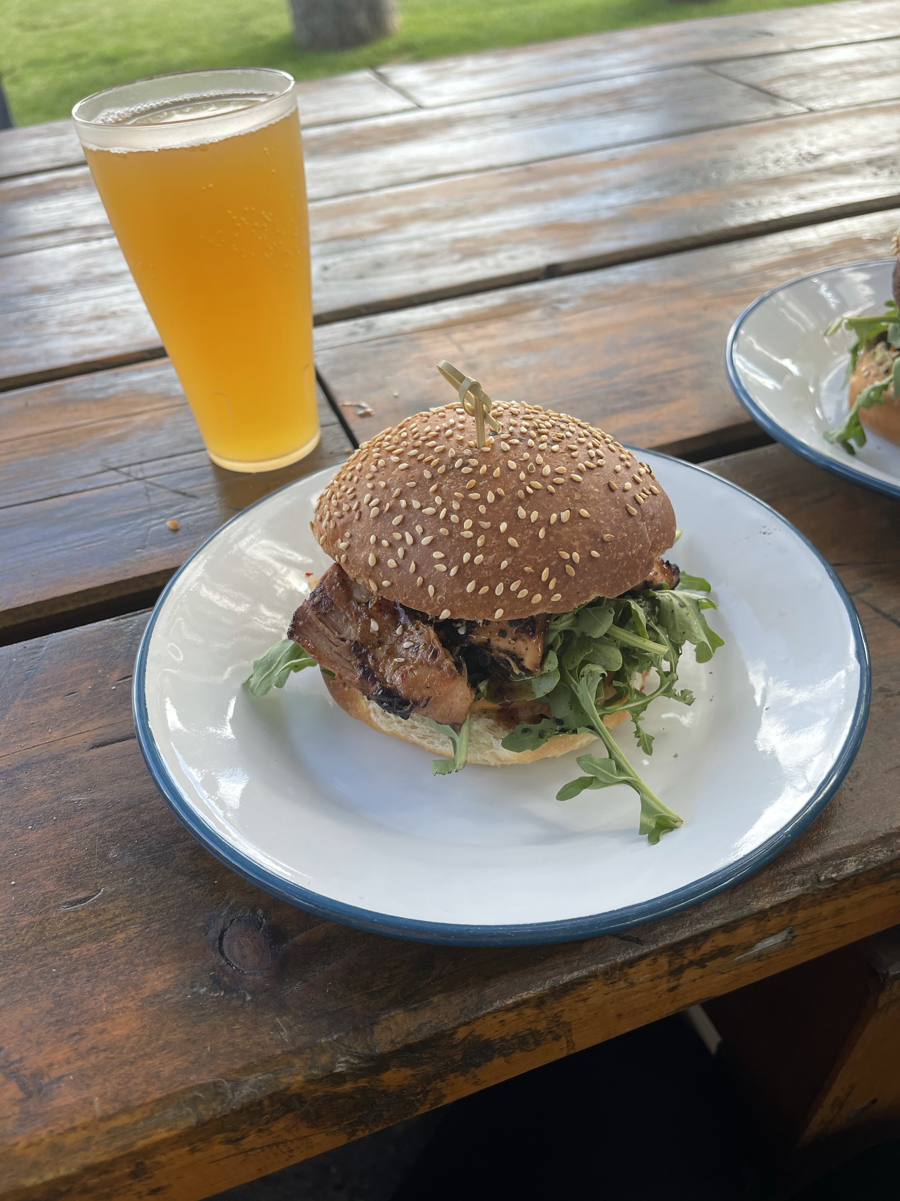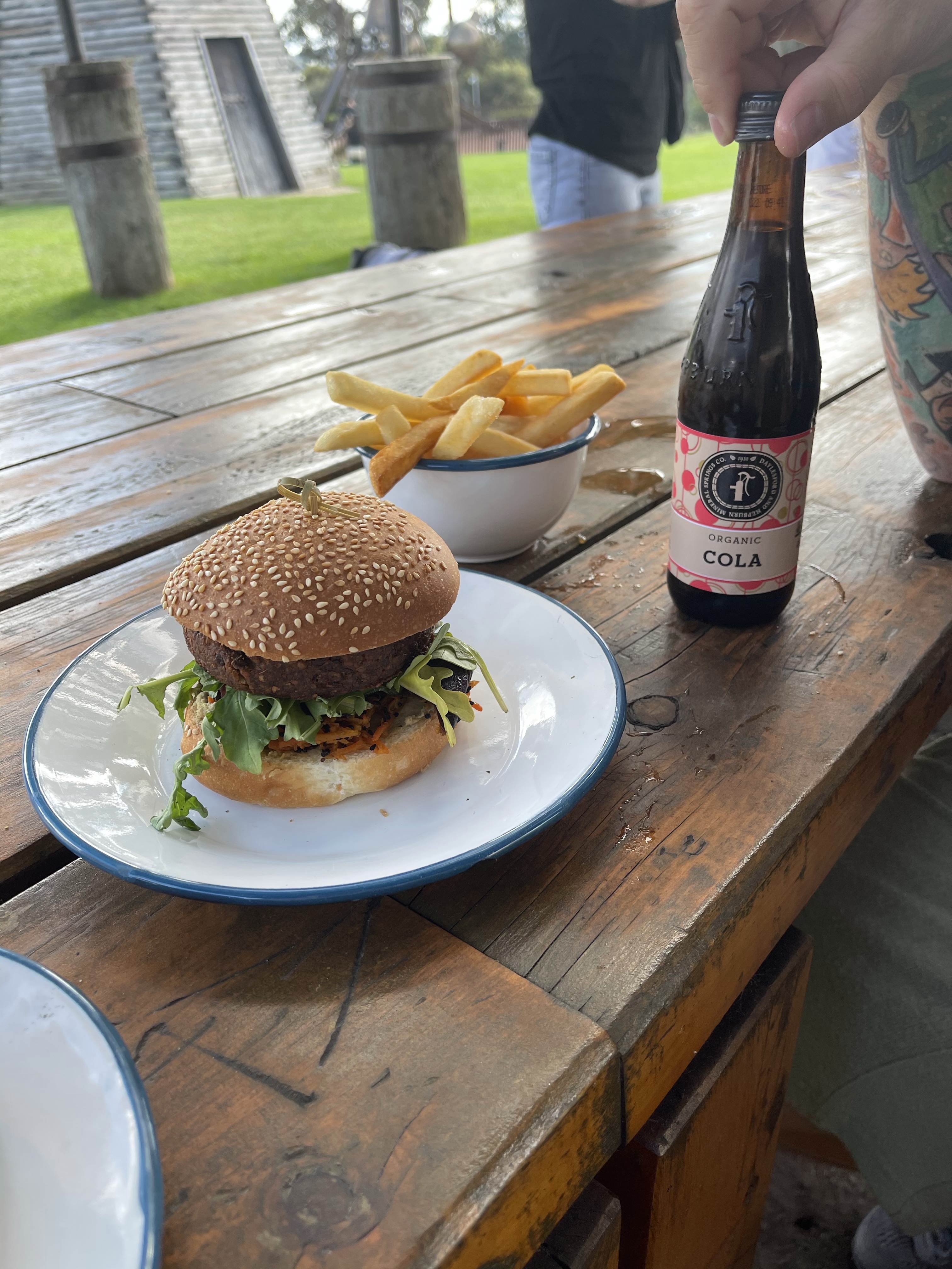 MONA is well worth a visit and is reason alone to visit Hobart. The art is sometimes really confronting or just so bizarre but you can’t look away. The building and grounds are quite eye catching themselves. After we walked through the entire museum we were ready for lunch. On the lawns of MONA is a burger bar which is open sometimes. It was nice and sunny so Ronnie grabbed a falafel burger and organic cola and I got a Korean chicken burger and cider and we found a spot amongst the big crowd of people to eat it. There were musicians entertaining everyone out on the lawn. It was a pretty cool vibe.
