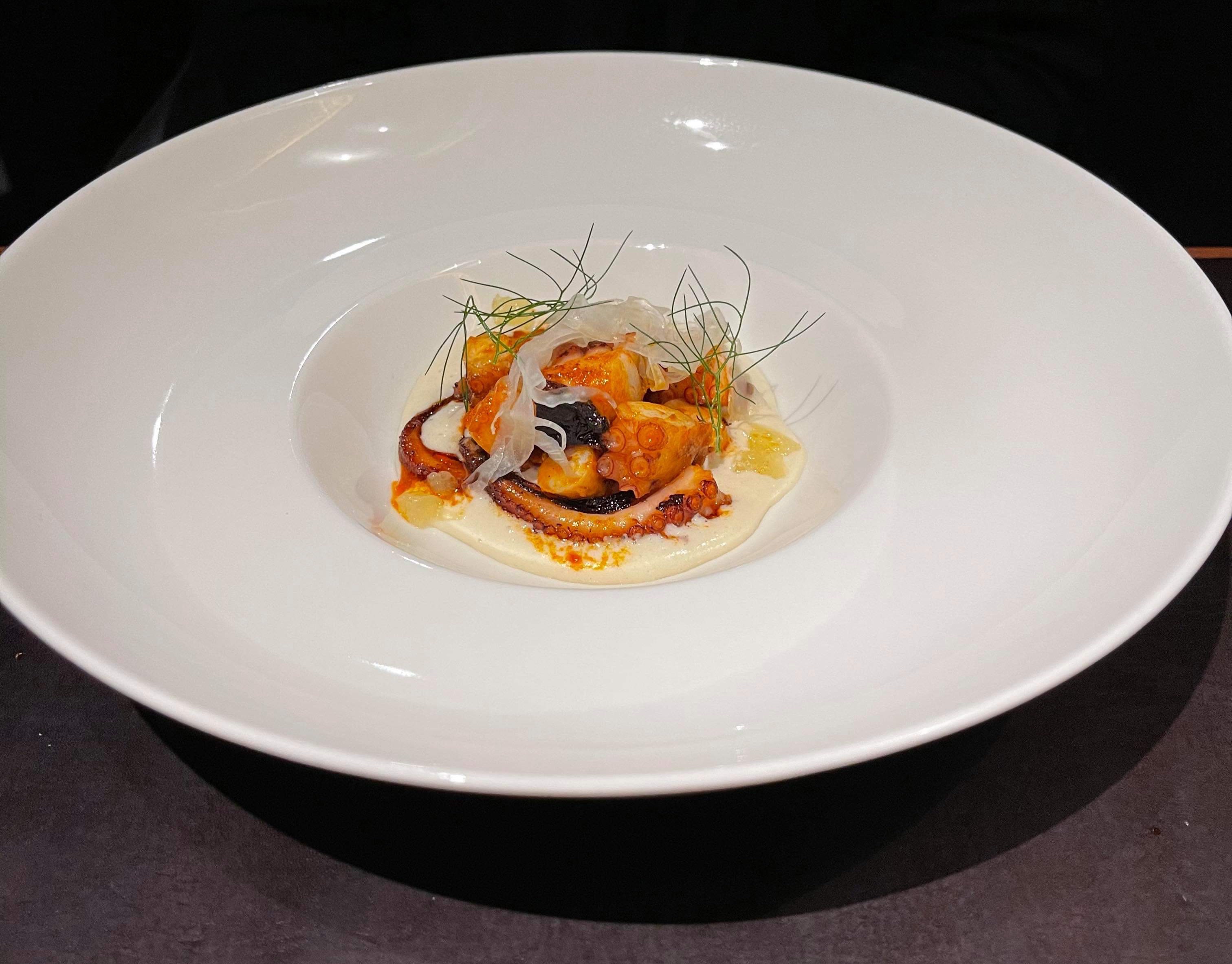 We were happy to go all out for our last dinner in Tasmania and we each ordered three courses. For my entrée I ordered char-grilled octopus with potato, nduja and fennel. It was quite tasty and it was pretty spicy for me. Ronnie got rice-crusted calamari with miso, yuzu aioli and smoked chilli. Ronnie’s dish was the winner here. The rice-crust on the calamari was really good.