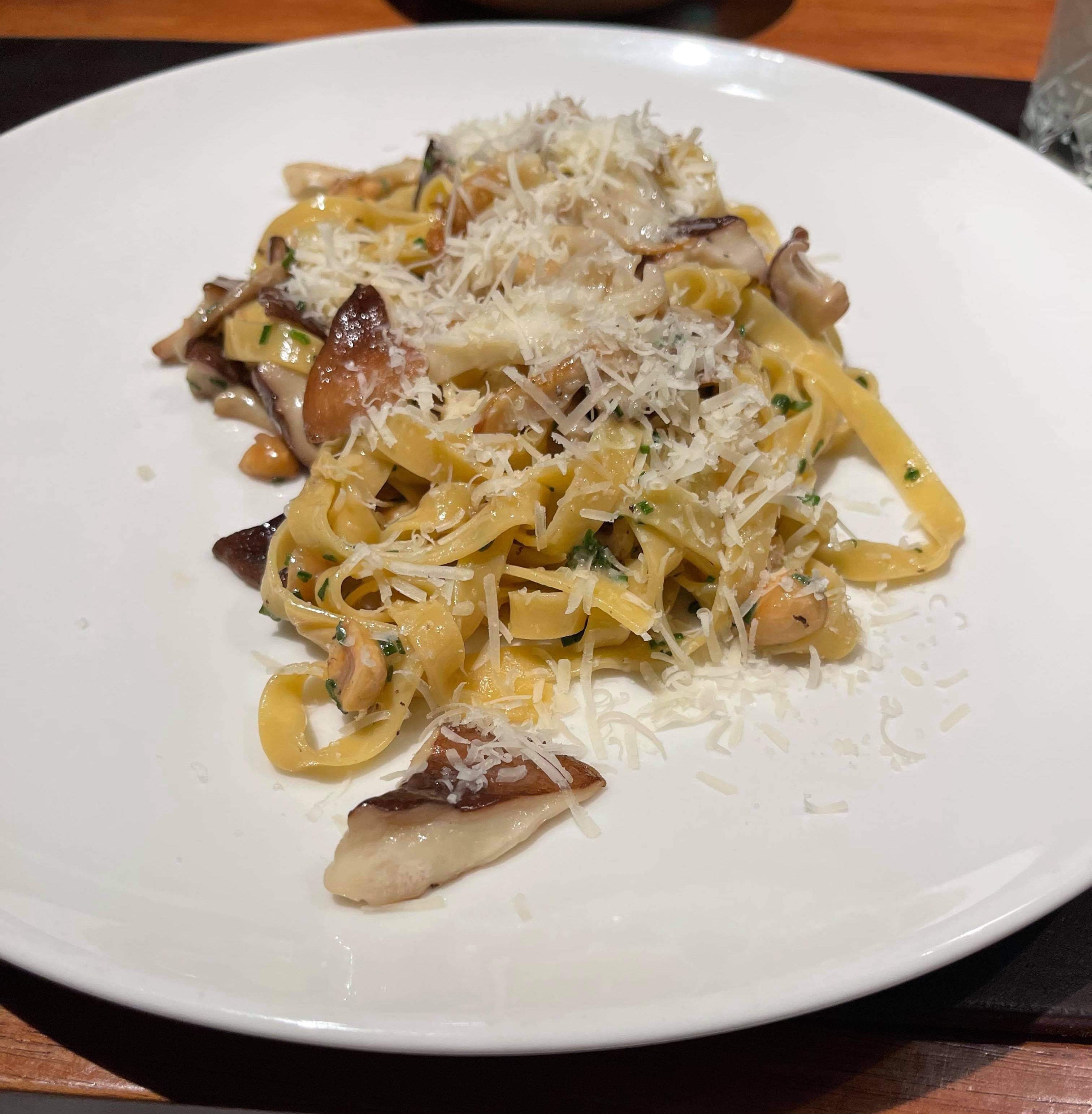 When I booked this restaurant I looked at the menu and always intended to order steak for my main course because they cook them on a special Argentinian grill and they are known for their steaks. I just didn’t feel like it though, so I ordered lamb loin and confit belly with, turnip, roasted onion, kale and a rich jus. Ronnie decided on a pasta dish – hand cut fettucine with mushrooms, hazelnuts and truffled pecorino – since he hadn’t had a pasta dish on the trip yet. We both enjoyed our mains, they weren’t mind blowing but they were nice.