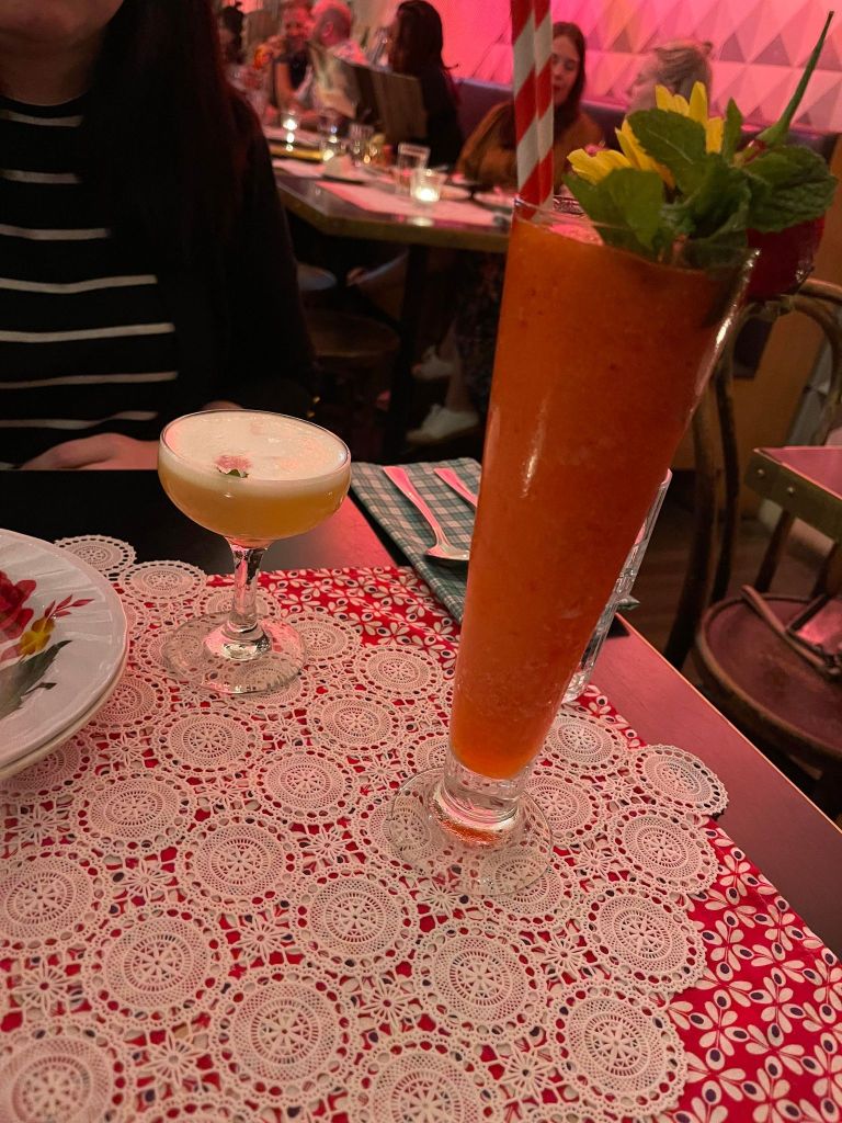 Aimee ordered a Pash Rash which had Vodka, Passionfruit and Egg whites which she said was absolutely delicious (it tasted like pavlova) and I ordered a Chilli & Strawberry frozen daquiri – Chilli! Weird I know right! They recommended it and I thought YOLO – this turned out to be an excellent decision. The drink wasn’t spicy but it had a kick at the end of each mouthful which was delightful. They also looked really cool: