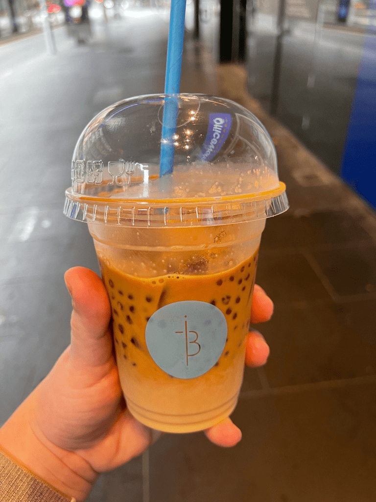 It was another beautiful Melbourne morning. We got up at around 7:30ish and decided to head out for coffee first. We walked down the road to Industry Beans – Speciality coffee roasters and made our orders. Another delicious drip. Melbourne is really well known for their coffee culture and is seen as one of the best coffee cities in the world and you can really see why. Aimee decided to change it up today and bought an iced coffee with pearls which she really enjoyed.
