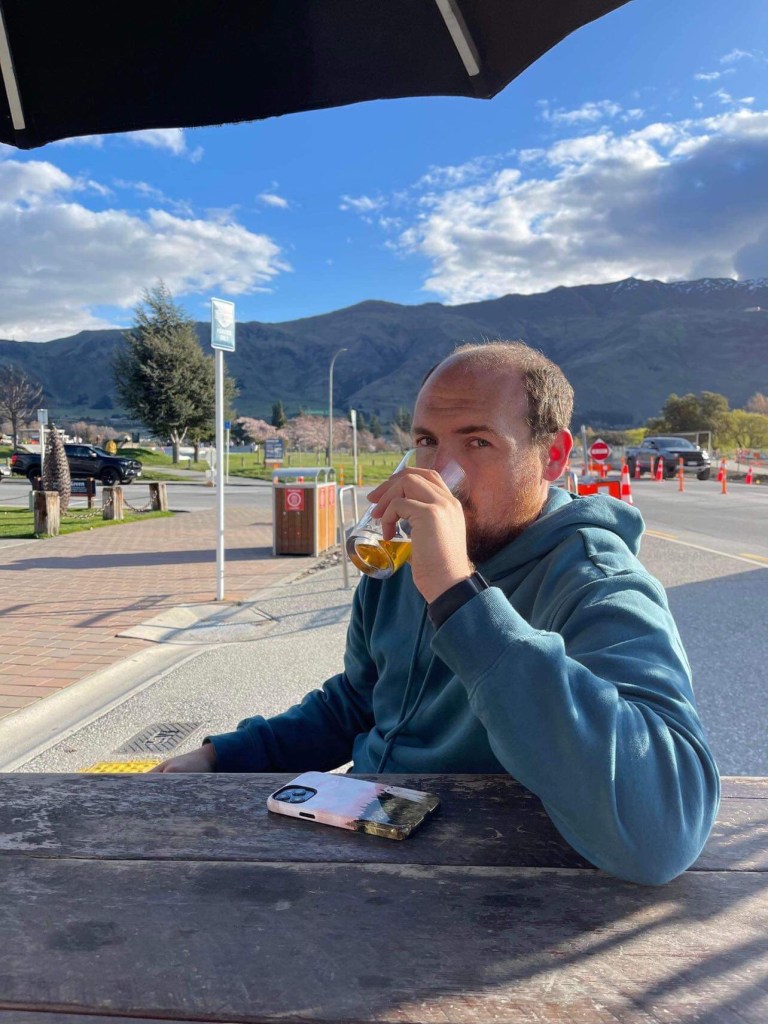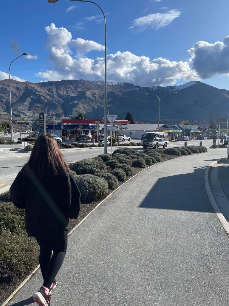 We were about to begin the road trip to Wanaka so Ronnie got a coffee for the drive. He didn’t rate this one much either. The drive was crazy! We had a really windy drive up a really tall mountain. At one point we were almost driving level with an airplane that was still quite high in the air. The trip was about an hour and the views were so good. We’re already convinced this has to be one of the most beautiful landscapes in the world.