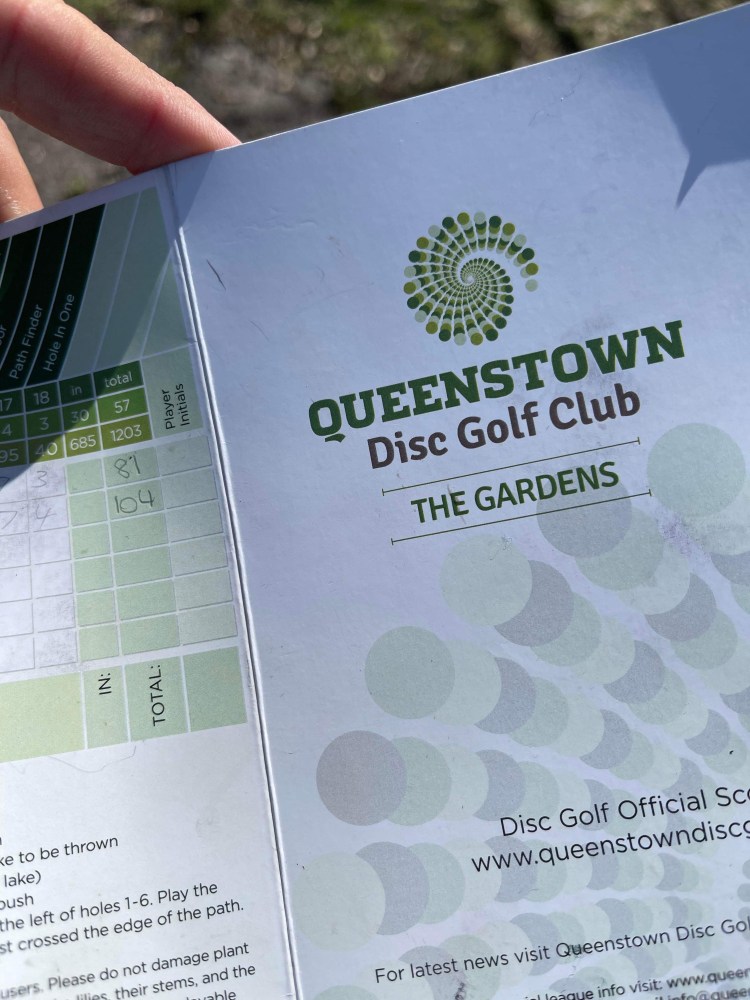 When we were finished eating we drove to our first activity for the trip – disc golf. When we arrived at the course located at Queenstown Garden we were looking for our backpack with the Go Pro in it and realised we’d left it back at the bakery! This is usually something Aimee would do but this was Ronnie’s mistake this time. Aimee’s been kind about it although he’d never let her live it down if it was her fault haha. Anyway, we rushed back there, Aimee jumped out to grab it and it was untouched. Thank goodness!