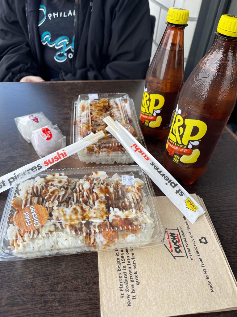 It was finally time for lunch and we had to grab a few little things from the shops so we headed to a shopping complex nearby. Even the views from this area were amazing. We stopped by Kmart for the things we needed and then sought out food. The place we really wanted to go was Taco Medic but it was closed for lunch due to a staff shortage. We’ve seen this a bit already which is a bit of a shame but we ended up at a busy sushi place and got some chicken and rice boxes, L&Ps and mochi for a sweet treat – strawberry cream and red bean cream. It was good and filled our bellies but the mochi was so soft and the texture of the filling was a little odd.