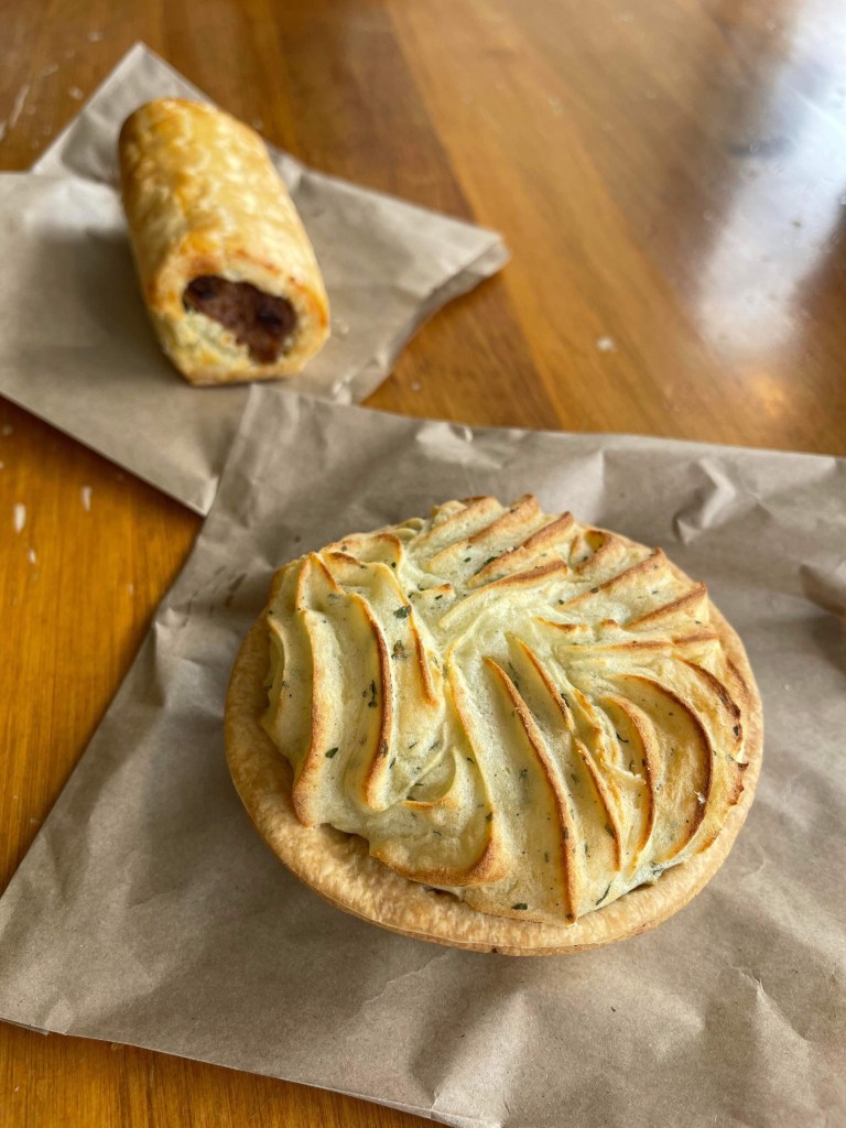 For breakfast we went to The Bakery Queenstown. We really love a bakery breakfast more than a sit down big breakfast. Mainly because we can do a good bacon and eggs at home but don’t go to the trouble of making breakfast worthy baked goods at home. Aimee went with a classic sausage roll even after having one yesterday. It’s just a good, satisfying brekkie. Ronnie went with a hot option too because of the cold weather and ended up with a potato pie. He quite liked it, not amazing but satisfying. We also both got cappuccinos but didn’t rate them much.