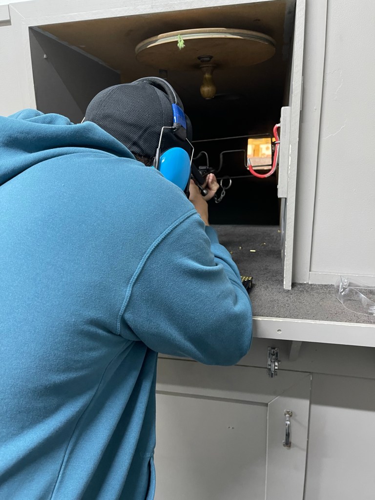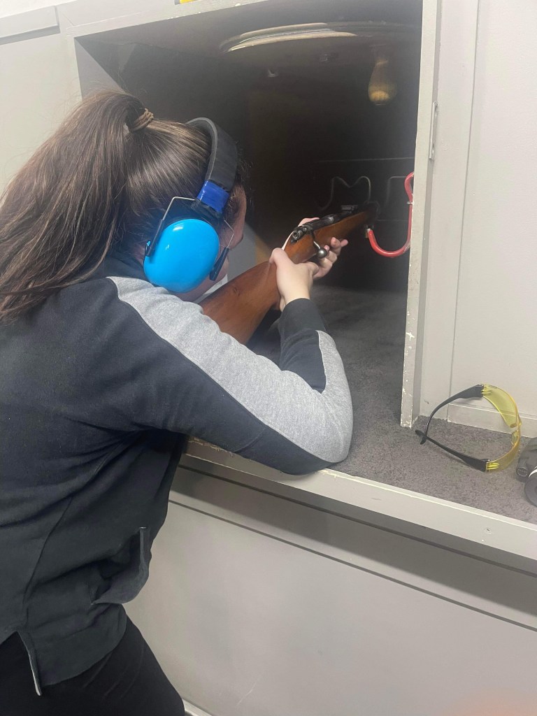 Then we moved onto the rifle range. With our 25 bullets the first 5 went into calibrating the gun, the next 10 were practice shots and the final 10 were the competition shots. Aimee took a long time to calibrate her gun and only came good towards the end. Ronnie was a marksman, only missing the centre 3 times in the last 10 bullets. A clear victory for him again. This was also the first time Aimee had ever fired a gun. She was nervous about it but ultimately enjoyed rifle range.