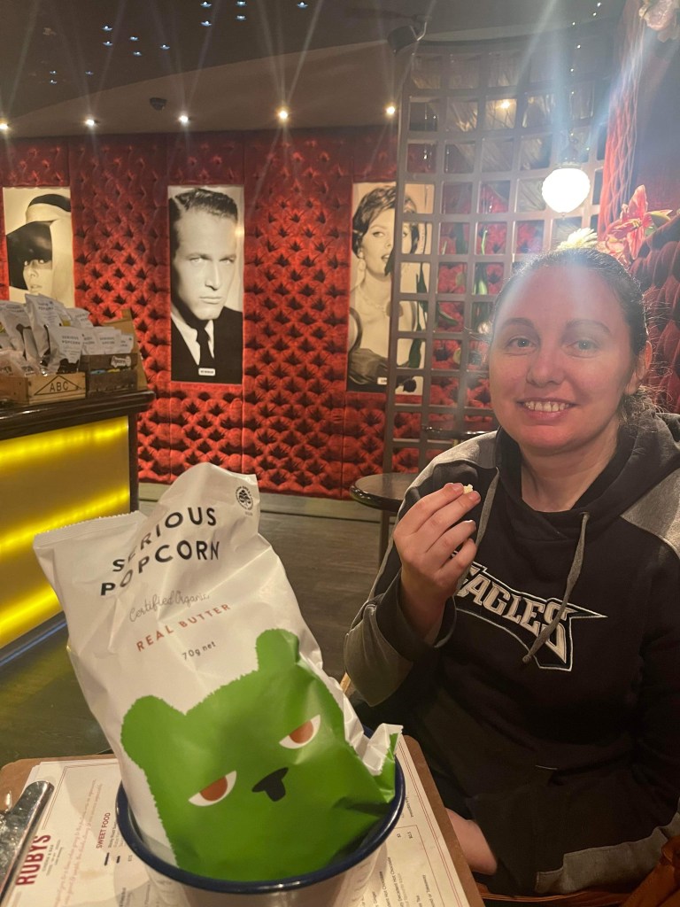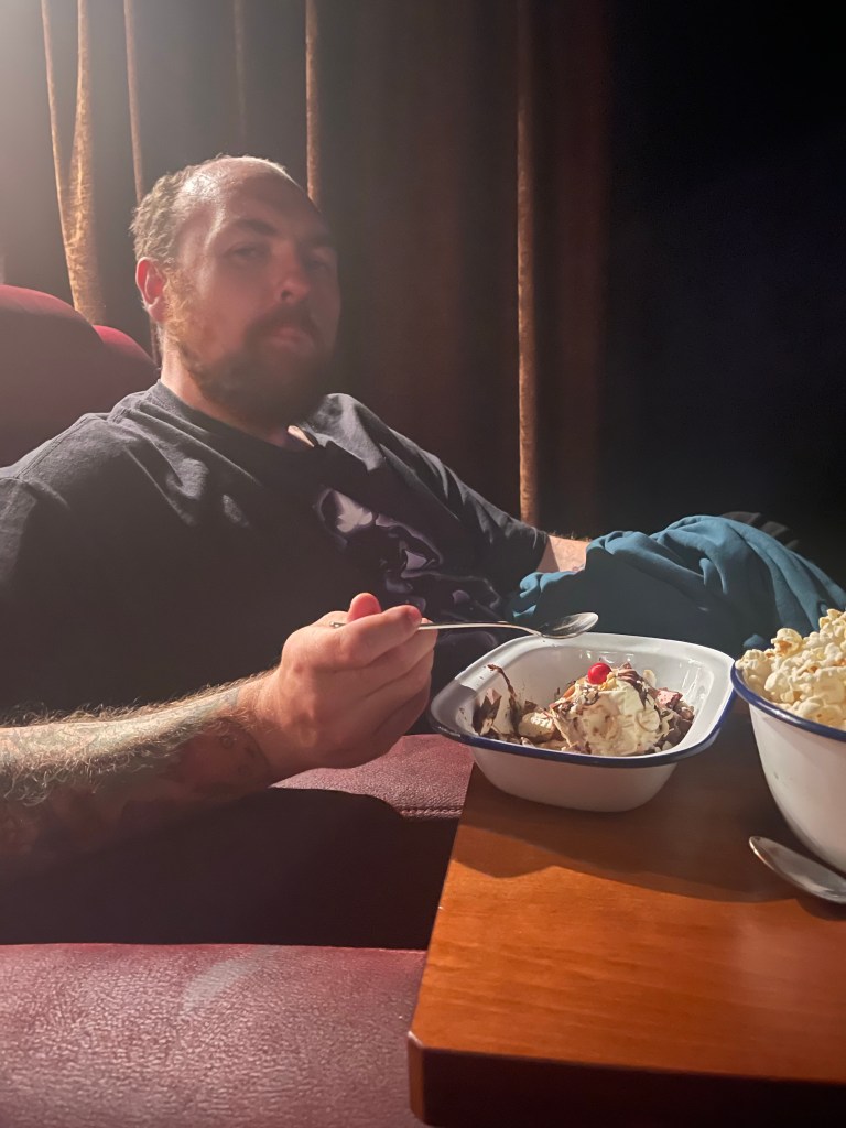 After dinner we had planned to go to a boutique cinema called Ruby’s bar and cinema. We pre-purchased tickets and went. We of course picked the most Arthouse movie that was currently showing because of course we did! It’s a boutique cinema! We ordered a Rocky Road Sundae and some popcorn to eat at our recliner whilst we watched “Three Thousand Years of Longing” starring Tilda Swindon and Idris Elba. Pretty decent movie, cinematography was lovely. Very Arthouse though which ticked the box. The food was delicious and the cinema very comfortable (It seats 16 but there were like 6 people in there). It was a really nice experience.