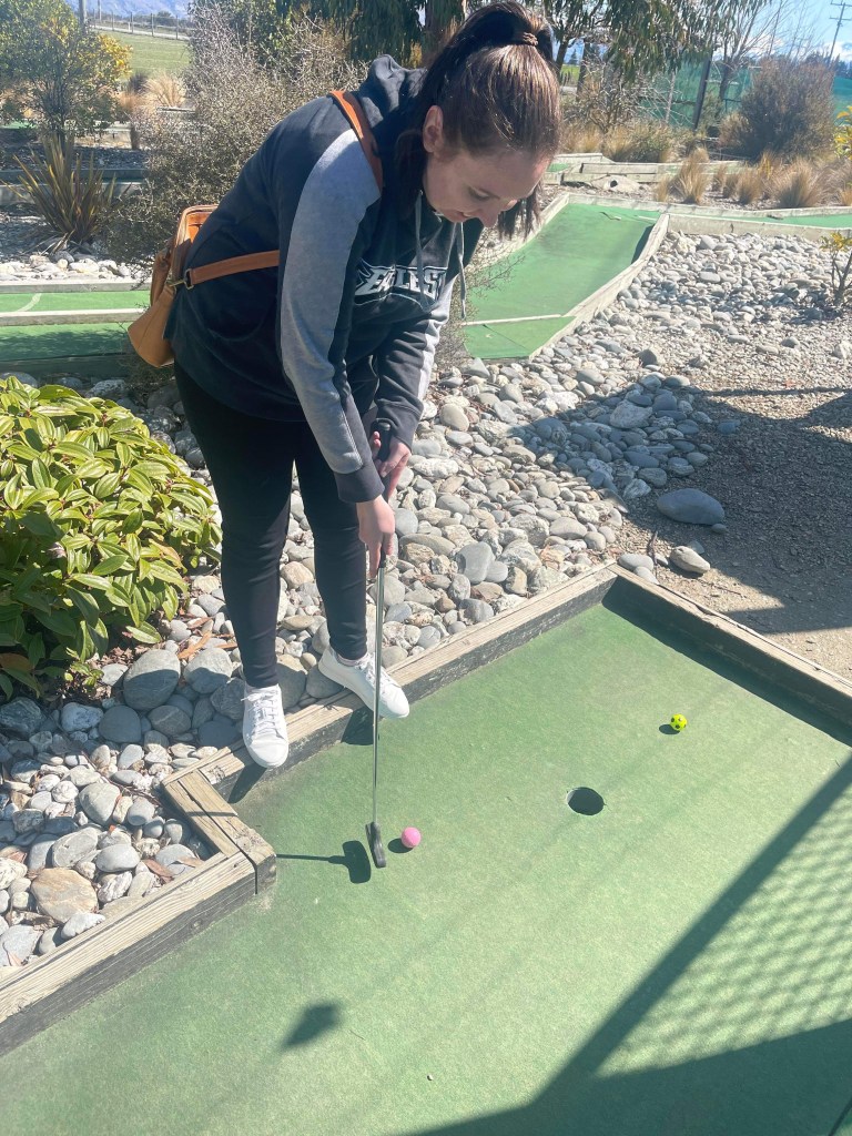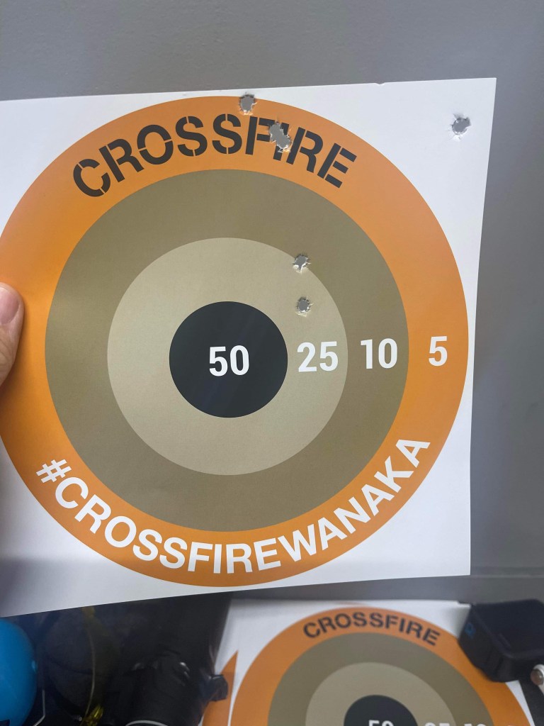 After this we set out for our first activity. We drove about 5 minutes up the road to a place called Crossfire Wanaka which is a shooting range where we purchased the ‘Big Shot’ package each. The big shot package includes 30 minutes of archery, 25 bullets at the rifle range, 20 bullets at the clay pigeon shooting, a bucket of balls for the golf driving range and 18 holes of mini-golf. Quite a great deal really.
