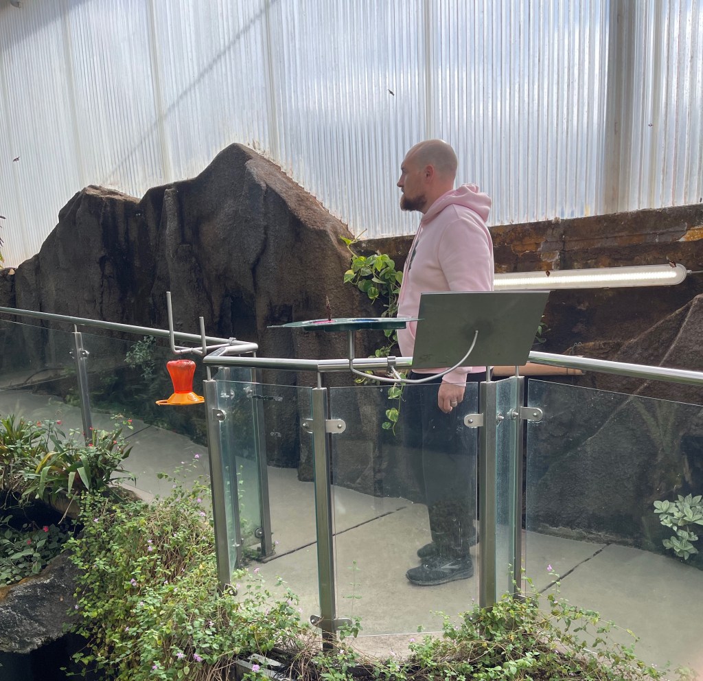 The science centre was all interactive. It also had a tall slide, light room and butterfly sanctuary. We played around with the interactive stuff first. There was one where you had to build a structure to withstand an earthquake. There was another where you put a straw on a metal rod and when you bit down on it you could hear music. That was super cool. Ronnie had a go on the slide, we checked out the light room and then headed to the butterfly sanctuary.