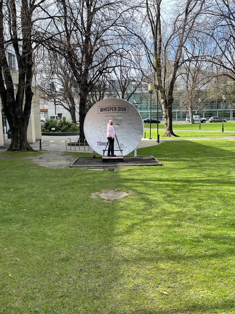 After we finished eating we were going to the Otago Museum. Before we headed in we checked out the whisper dishes. They were two big metal dishes faced towards each other a good distance away. You whisper into one while another person stands at the other and they can clearly hear what you said. Very cool.