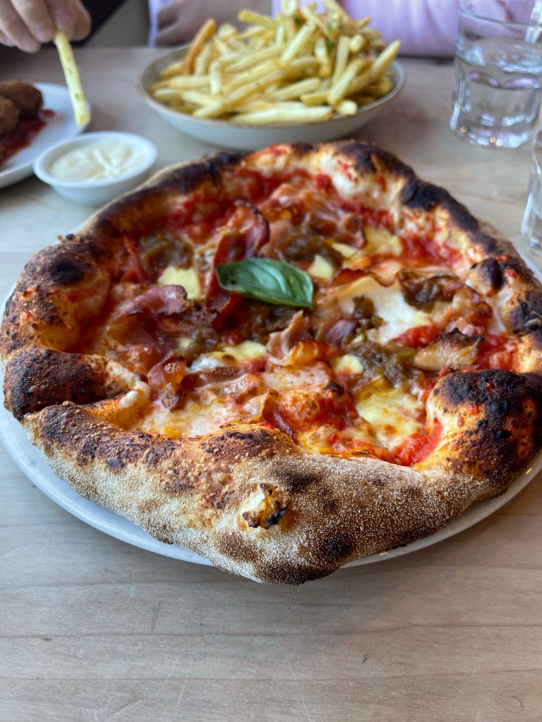 We ordered crochettes, fries with aioli, a pancetta pizza and parpadelle pasta with slow roasted lamb and mushrooms. All of the food was so delicious. The crochettes were the perfect texture and flavoured with salami, the pizza base was crisp and the sauce was nice, and the pasta was perfectly al dente. Even the fries were very tasty with garlic and parsley to flavour them. This was easily our second best meal we ate so far (after Margo’s in Queenstown) and Aimee touts it as the best Italian food she’s had outside of Italy. It wasn’t anything fancy but just perfect.