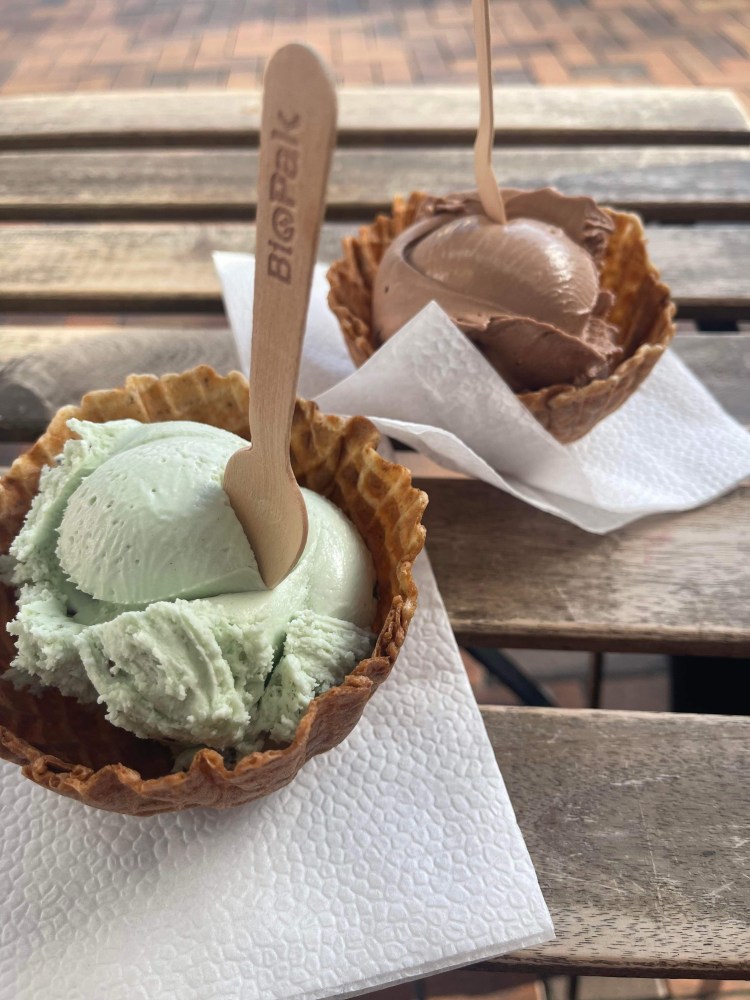 After the amazing dinner we walked along the esplanade for lovely ocean views. We then headed back to near our hotel for a sweet treat. We wanted to end the perfect Italian meal with gelato. We went to Gelato Junkie at the heart of Dunedin, the octagon. This place just does either a waffle cup or a waffle cone. No disposable cups. We both got waffle cups, one with mint chocolate chip gelato and the other with Belgian chocolate gelato. The gelato was super creamy and tasty and the waffle cup was flavoured with cinnamon so it tasted like a churro. So genius and yummy. We wish more gelato and ice cream shops did this.