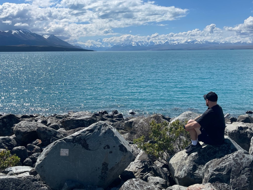 Eventually we made the trek back – much nicer views this time. The sun was out and we couldn’t stop smiling. What a time. It made the 5kms walk back to the car a breeze. We got back in the car and made the 1.5 hour drive back to Tekapo. We stopped at a nice spot for a view at lake Pukaki for some very nice views and quick photo stop.