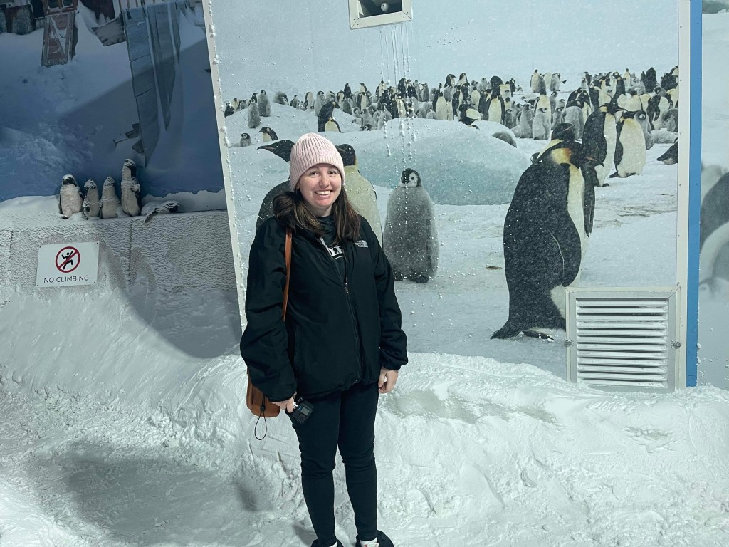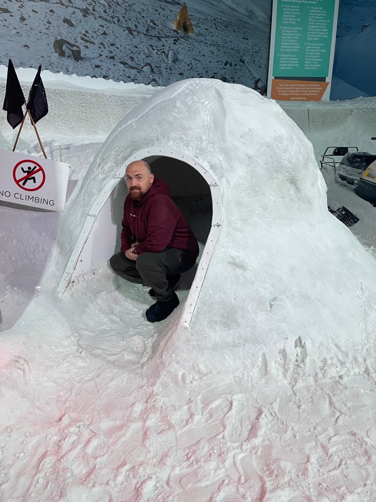We both went into the wind storm simulator. When we walked in there it was already -8 degrees. It then counts down to the storm and during it the winds go up to 30 km/hr and the wind chill is over -20 degrees. You can find shelter or just cop it. We braved it and it was ridiculously cold.