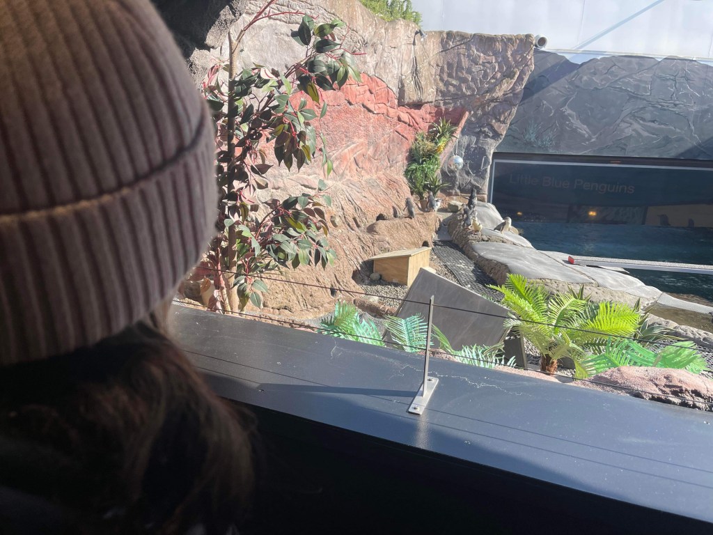 After that we just wandered around. We would have liked to go the 4D theatre but we didn’t want to wait an hour for the next show to start so we gave it a miss. During our wanders we came across the Huskies. Aimee loves dogs so she went over to meet them. She immediately made a connection with them and they were battling each other to get pats. We also met another one on the way out called Thea. She was really calm and precious.