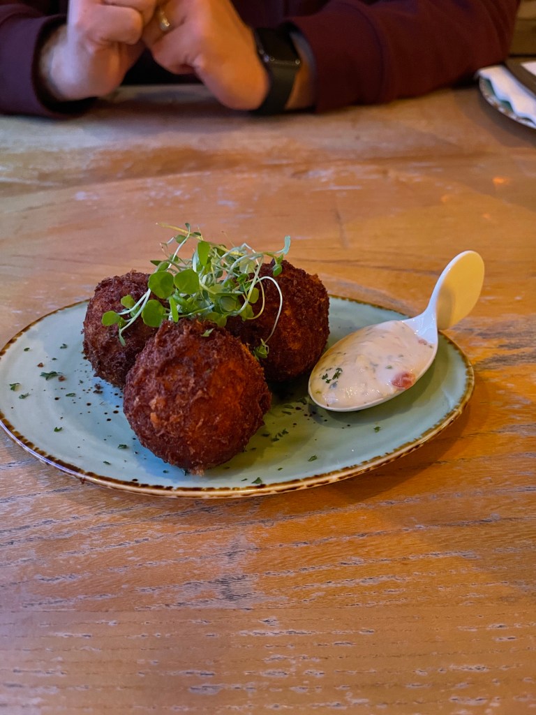 We settled into the hotel and drove over to the restaurant we had booked in for dinner. Tonight we were eating Brazilian at Gramados. The host sat us down and he was an extremely handsome and nice man. He sat down at our table and explained the meals to us (as they are all in Portuguese). We ordered for our entree Croquettes with lamb & Chimichurri with a spicy sauce. It was soft and meaty and spicy all at the same time. Really delicious and a great start to the meal.