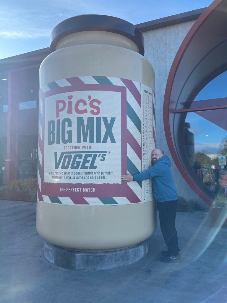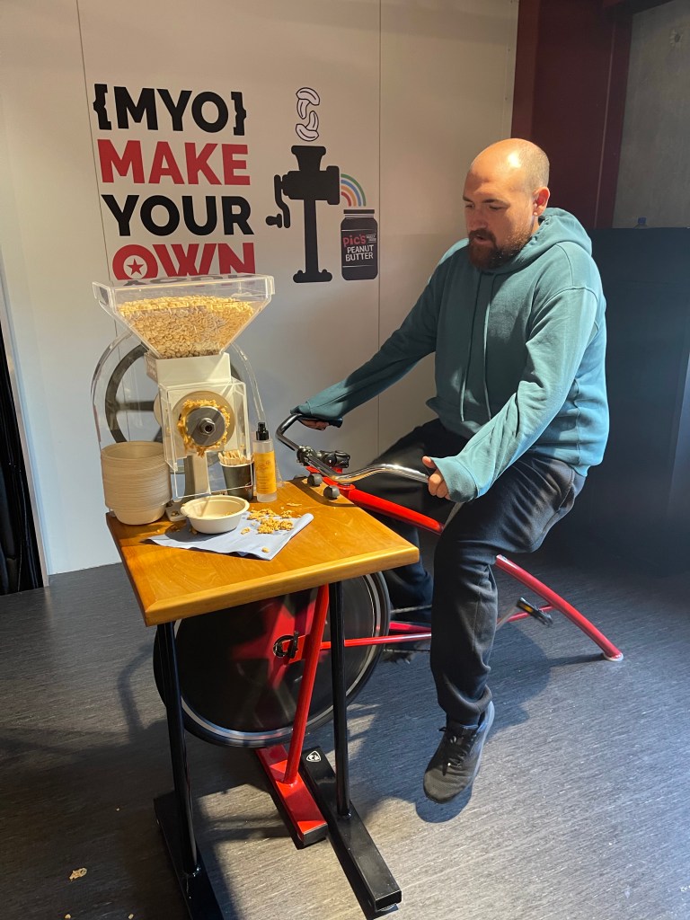 It smelled really nice in the factory. There was a bike that you could ride to make your own peanut butter which of course we did! Yum! Then we got to try different types of peanut butter – Smunchy (a mix between smooth and crunchy! and the big mix which was peanut butter with all different seeds in it that was surprisingly delicious.