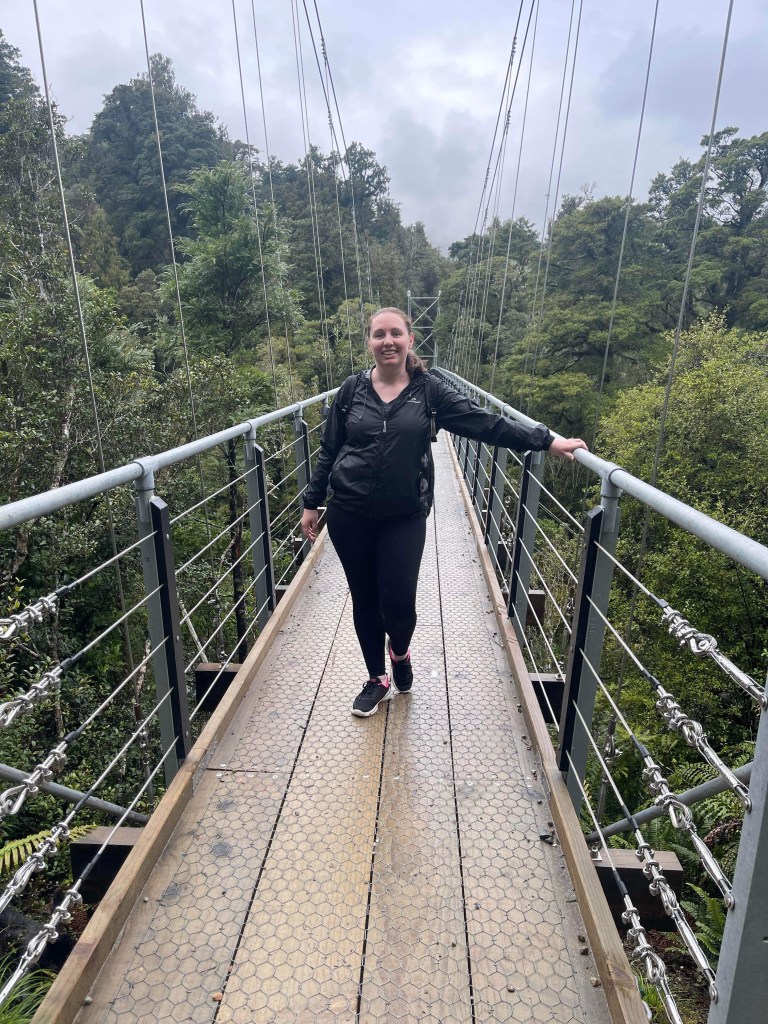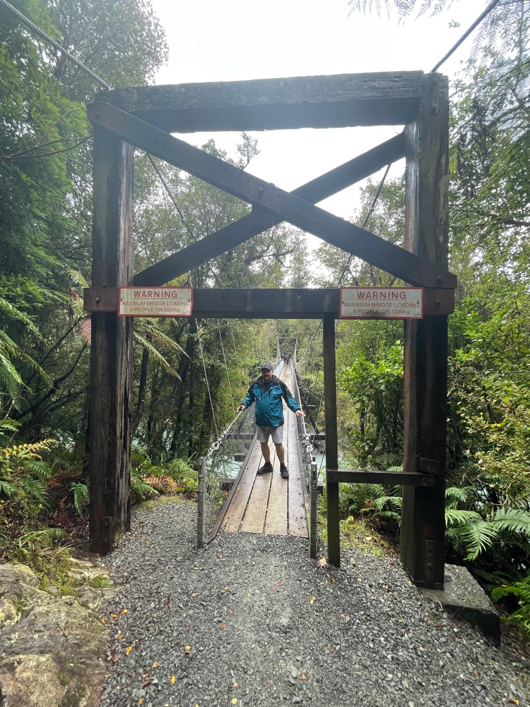 Luckily for us, the rain was light and it made the hike better by giving it that rainforest feel. The hike was not a long hike but it was brilliant. You walk through rainforest type environments on a very well manicured hiking path. It has a large suspension bridge and a large swing bridge that are always scary to cross when they start moving.