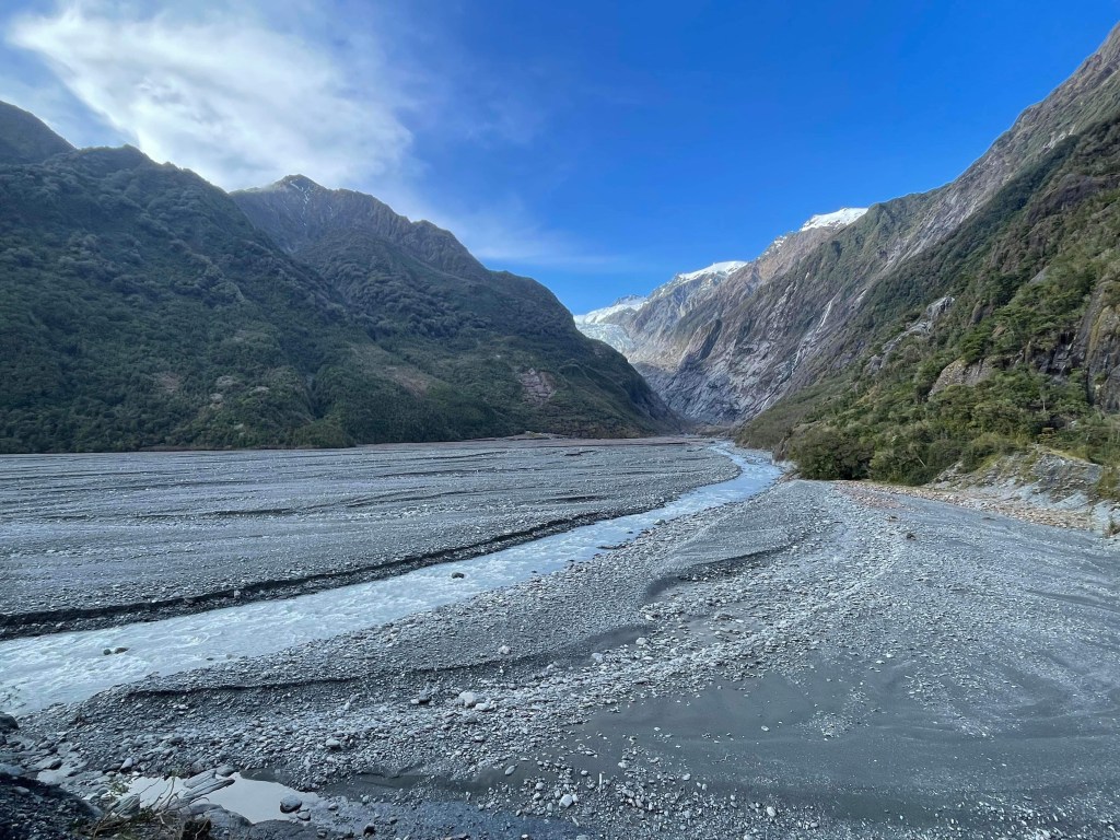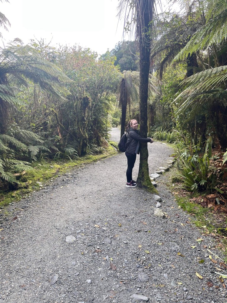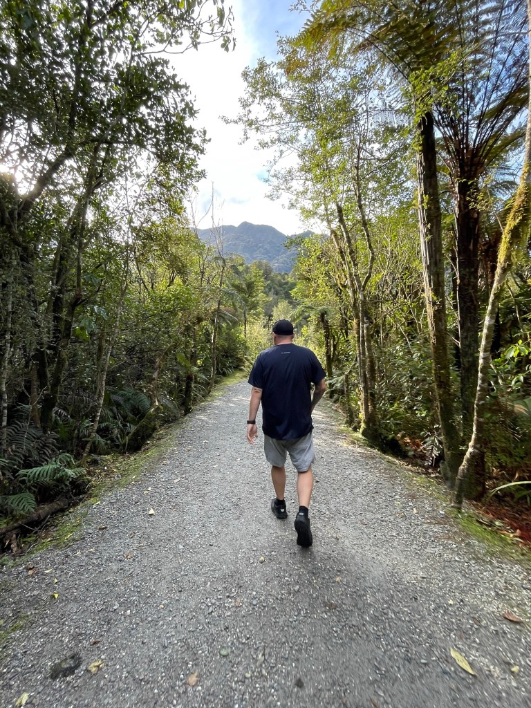 We then got ready and drove about 5 minutes down the road to begin our first activity. As Aimee didn’t get to go on the glacier helihike yesterday we decided to do the glacier view walk. It was a short 20 minute walks through some nice vegetation on a well manicured path up to a viewpoint to see the Franz Josef Glacier. It was really quite a stunning view. We have had a lot of views of mountains on this trip, but honestly, it never gets old. So beautiful. A really lovely view. Due to climate change the glacier has receded a lot and probably won’t exist in 100 or so years. It was great to be able to witness it.
