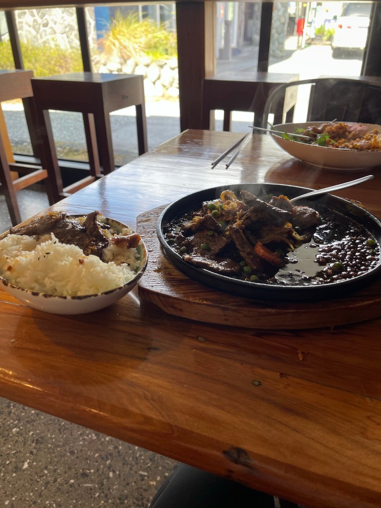 We made it back to the Franz Josef township ready to grab some lunch. We decided to have lunch at the Snakebite Brewery. It was weird because the same guy serving us last night at blue ice was working here too and served us haha. We ordered a serve of pork and prawn dumplings which were pretty decent and we got a sizzling garlic pepper beef stirfry which looked and smelled amazing, but wasn’t that good as the beef was a bit dry. Ronnie got Nasi Goreng which was spicy and yummy. It went down a treat.