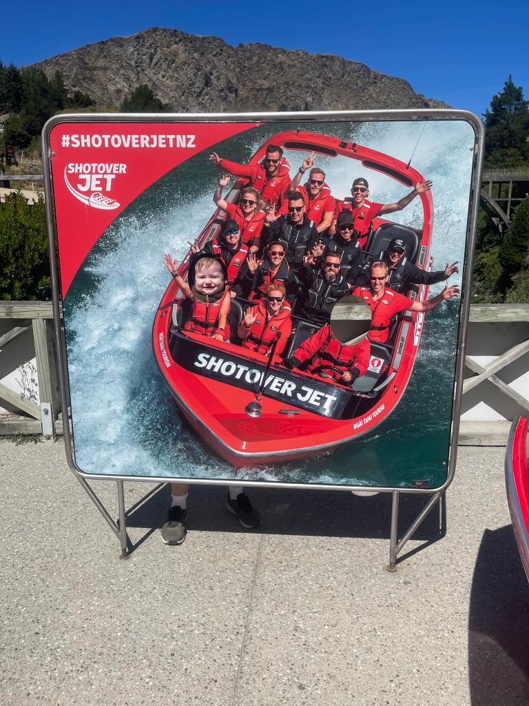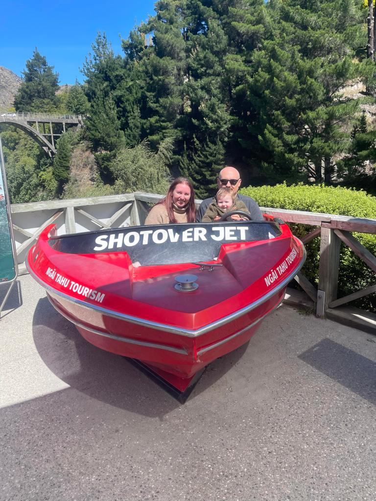 We then got back into the car and drove all the way to the Shotover river for our next activity. We had originally planned this for tomorrow, but we had a bit of a tight schedule, so we got it moved to today. Ronnie did this last time we were in Queenstown, but Aimee was pregnant at the time, and they don’t allow you to do it while you are pregnant. It was the Shotover jet boating experience!