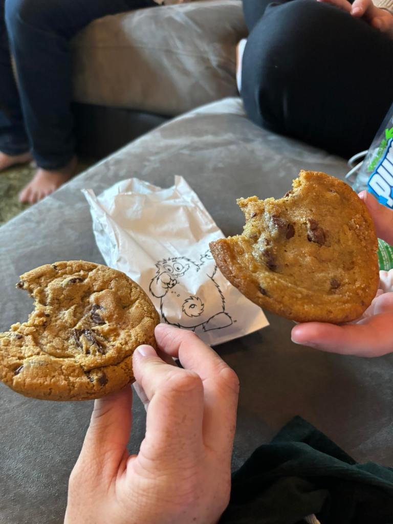 It was time to stroll back home which we did and settled in for the night.However, we had to quickly stop by Cookie time for some fresh cookies! We got some salted caramel, chocolate chip and chocolate fudge and caramel. They were so delicious! Nothing like a fresh hot cookie straight out of the oven.