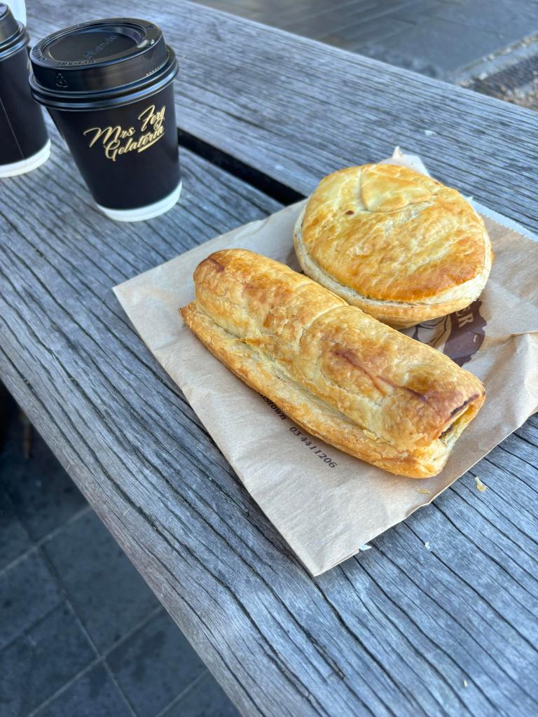 We all had a great sleep last night and it was cold this morning, a flat one degree Celsius. After we got ready, we strolled down to Ferg Baker. If you’ve ever been to Queenstown, you know what Ferg is. If you haven’t it is certainly the most famous thing in Queenstown, a QT institution one might say. It started with the burgers (more on that later) and has expanded to buy the three storefronts next-door and created Ferg bar, Ferg Baker and Mrs. Ferg’s Gelato. This morning for breakfast it was Ferg Bakery. Ronnie & Nan got pies, Aimee got a sausage roll and Julian got a croissant.