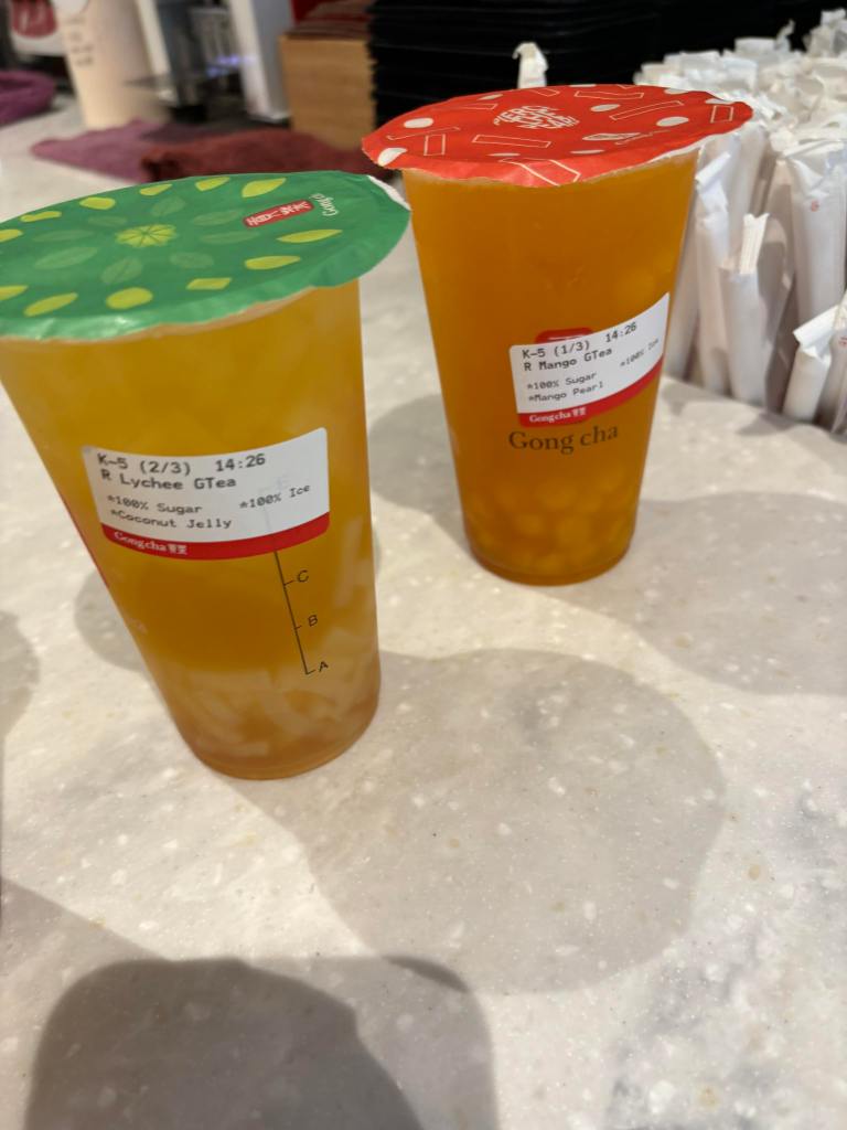 On the way back to the car we stopped at Gong Cha for some bubble tea. Ronnie got Lychee with coconut jelly and Aimee got mango with mango pearls. We always love a good bubble tea!