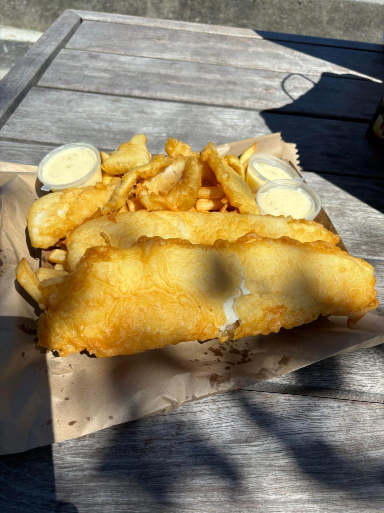 We worked up a bit of an appetite after our round of disc golf so we decided to go down to the waterfront for some fish and chips. We went to Erik’s Fish & Chips and ordereed the family pack.