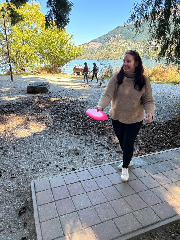The pies were big, flaky and the right amount of gooey, the croissant was buttery and flaky and the sausage roll was pretty standard. We also got a coffee which was average. We then drove to Frankton to get much-needed supplies at Kmart and then we went down to Queenstown Garden to do one of the things that we did last time that was at the top of our adventures. We played a round of disc golf. We can’t emphasize how fun and beautiful this activity is. The location is amongst the gardens and in amongst the giant trees on the side of a lake surrounded by mountains. It is just stunning and the game itself is super fun! It is so cheap and is an amazing way to get your steps in and spend a few hours outdoors.