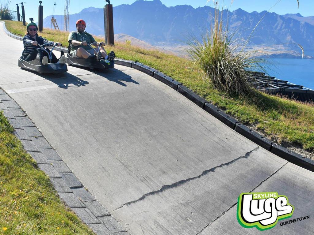 At the top of the gondola there are multiple view points, a restaurant, a few gift shops and it is the hub for some adventure activities that take place up here including paragliding, bungee jumping, ziplining and what we chose to do Luge-ing. We have done the Luge before in Rotorua and Ronnie did it last time we were in Queenstown and it is such an amazing time. You get in these little carts and cruise down the hill on the racetrack and race the shit out of everyone on the track!