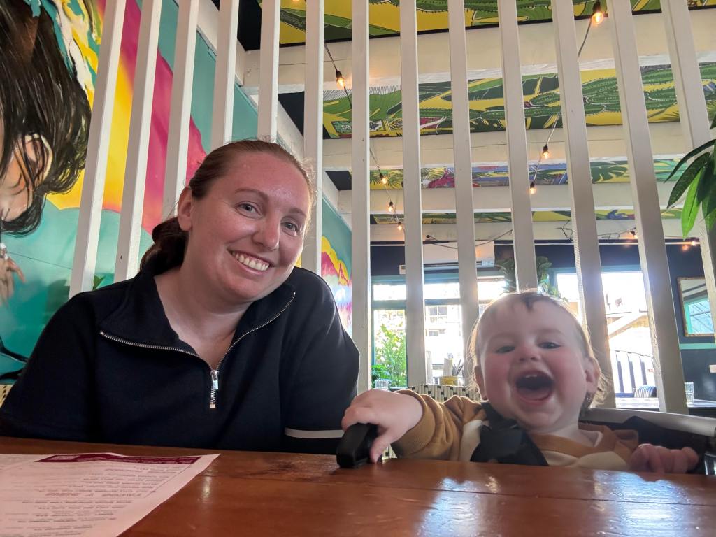 We drove back to the accommodation and walked down to our restaurant reservation. Tonight, we went to what Aimee declared as her one of her favourite dining experiences of all time last time we were in Queenstown – Margo’s. Julian was sat into this weird highchair that they attached to the table. He didn’t really like it so he was a bit upset and uncomfortable throughout dinner. We ordered him a cheese quesadilla which he liked though.