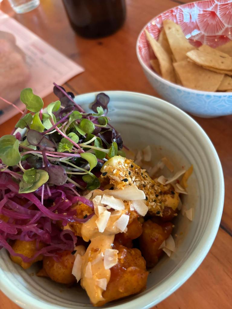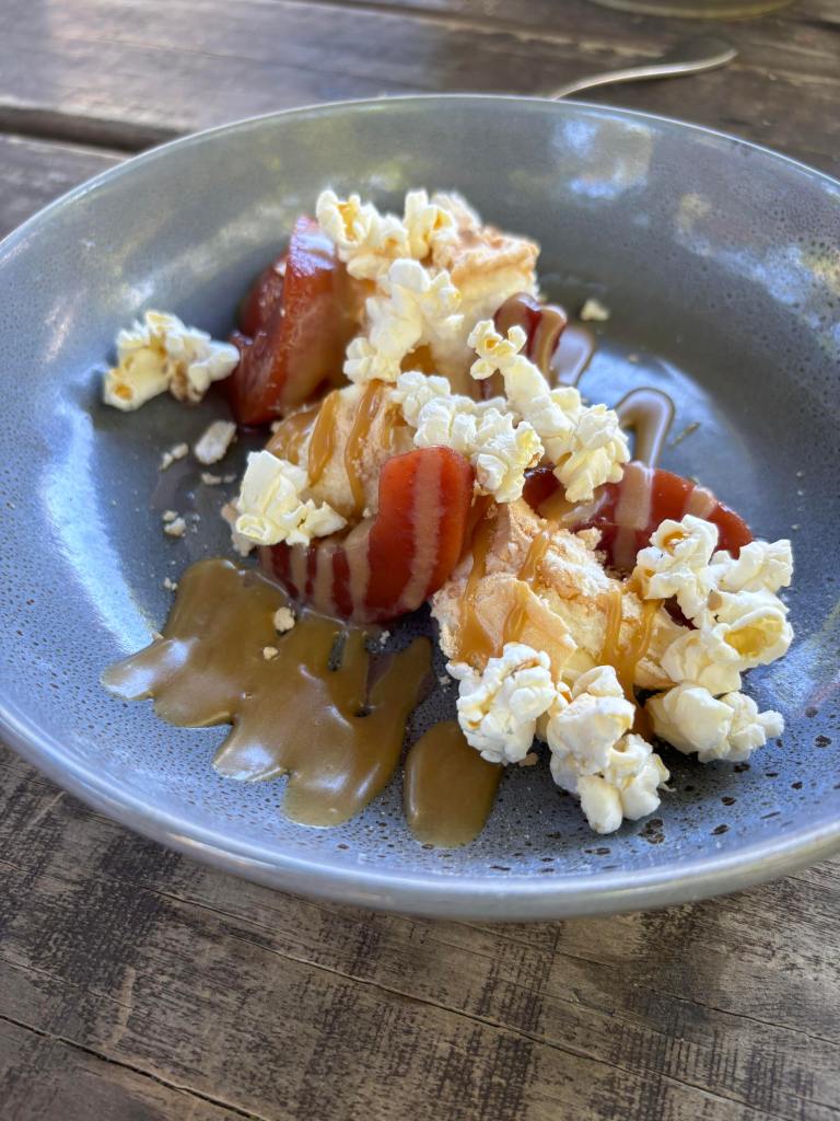 Then for dessert we grabbed a caramel popcorn pavlova which is exactly what it sounds like. Meringue with cream, caramel sauce, caramelized peaches and popcorn on top. It was absolutely delicious. Now the question begs, did Australia or NZ invent pavlova? Hot topic for debate.