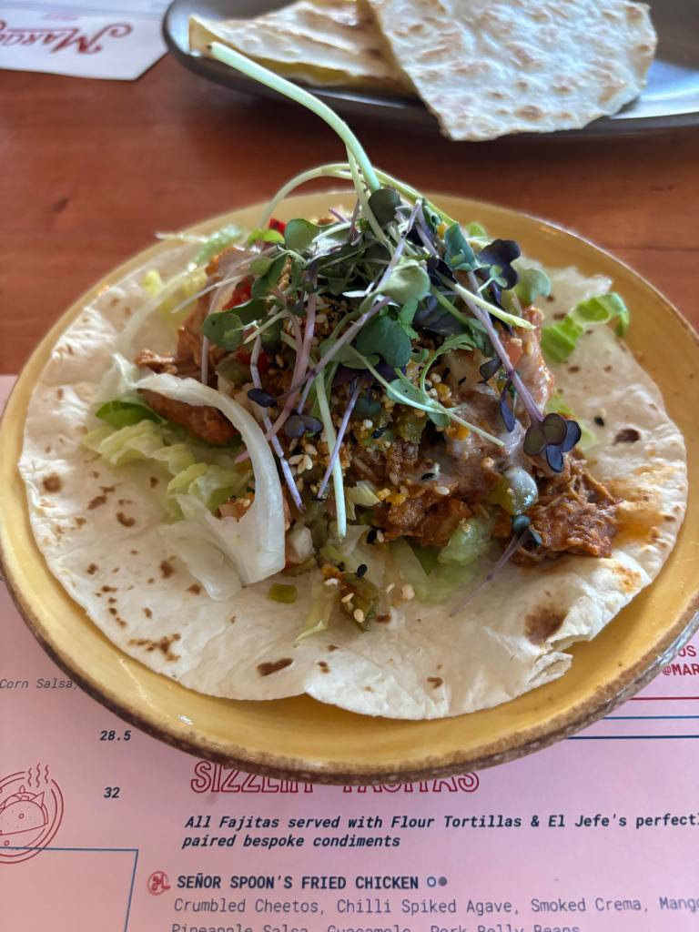 We also ordered a beef braised beef brisket taco and an apricot pastor pork belly bao and pulled chicken tacos. These tacos are very much loaded. They are huge and barely fit in the taco which was a welcome sight. They were all delicious. The apricot pastor pork belly bao was very interesting and unique.