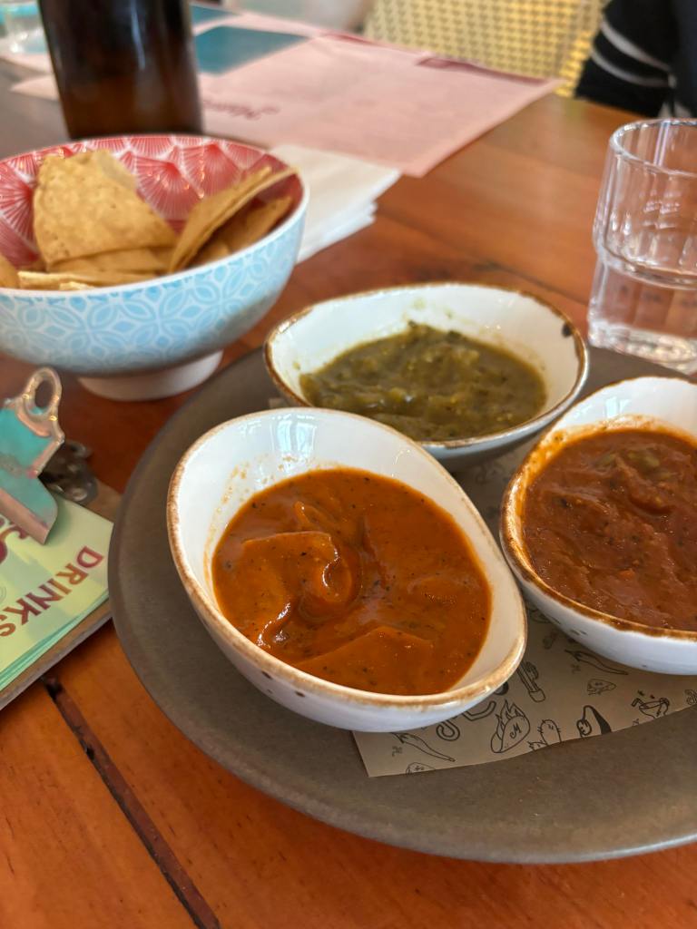 We started with an order of the corn chips with the trio of salsas (Salsa Verde, Salsa Roja and Sikil Pak).