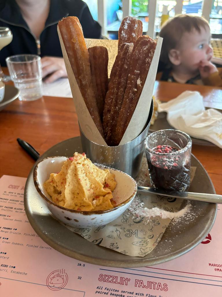 Then for dessert we had churros with a chocolate sauce and dulce de leche cream. The churros were crispy, and the sauces were lovely. We were full to the brink by this point and needed a lay down and a sleep. We stumbled back up to our accommodation with full bellies and settled in for the night to get some sleep for another big day.