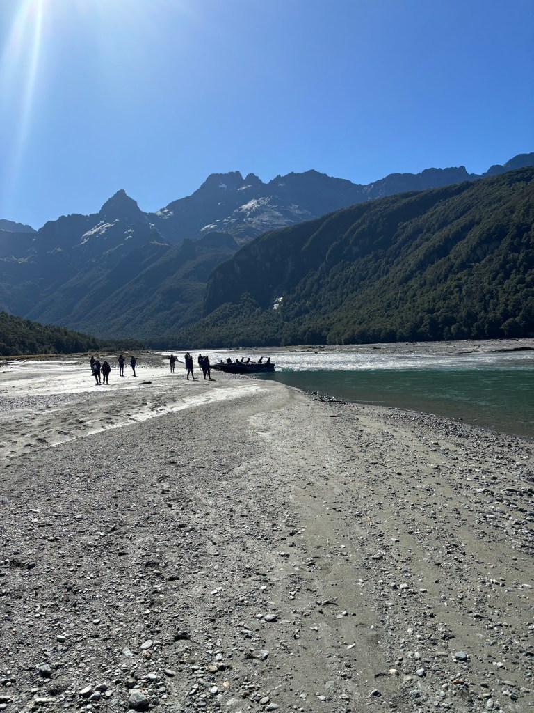 Then we hopped on the bus for a quick 5-minute ride to get on the Jetboats. These Jet boats are the exact same as the ones we did on the Shotover. We got front seats this time which was awesome. The jetboat hooned around the lake doing 360’s and stuff for a bit. The views of the lake and mountains around Glenorchy are just spectacular. We loved just cruising with the wind in our faces and taking in the views. The boat went all the way up the dart river as it came off the lake. This lasted about 40 minutes which was so good.