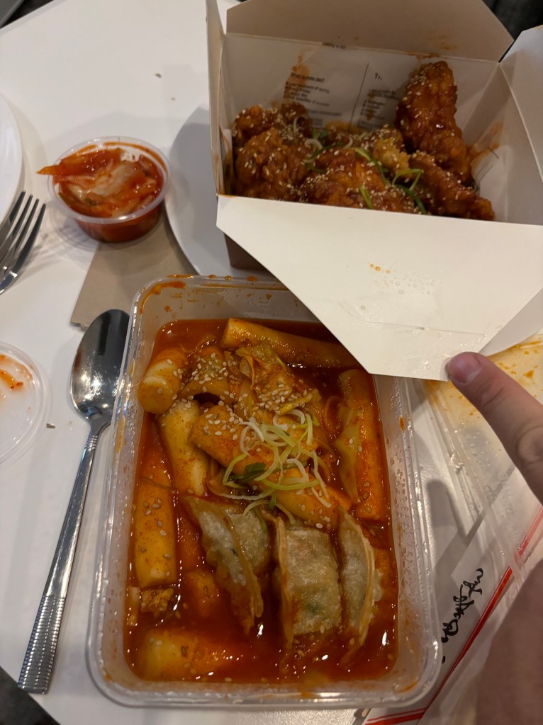 Once this was done, we all met back together at around 5pm at the Queenstown harbour. We walked around for a bit and went back into the accommodation. We went back out briefly and got some Korean take away at a restaurant called I LOVE Kimchi. Nan got some beef bulgogi and we got Tteokbokki and some sweet and spicy korean fried chicken. Tteokbokki is a dish made up of dumplings, fish cake and the main ingredient, tubular rice cakes in a spicy sauce. We also got some kimchi on the side. It was all delicious. There aren’t enough Korean restaurants out there, especially in Bathurst where there are none.